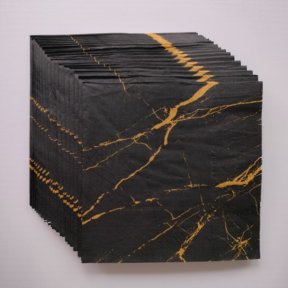 📚 Marble Pattern Black Paper Napkins 金色大理石花纹黑色餐巾纸