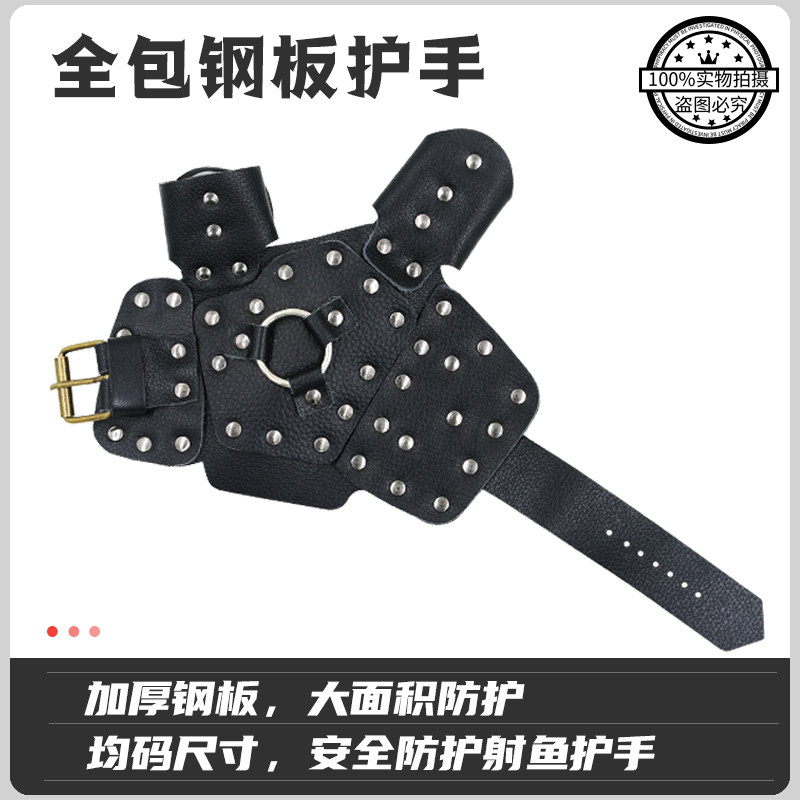 📚 全包裹钢板护手射鱼护手弹弓射鱼镖护手打不穿牛皮飞雪渔轮腕带