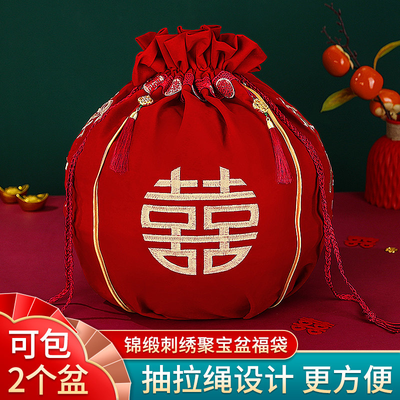 📚 结婚包袱皮刺绣束口福袋女方陪嫁聚宝盆抽拉包裹红布婚庆用品大全