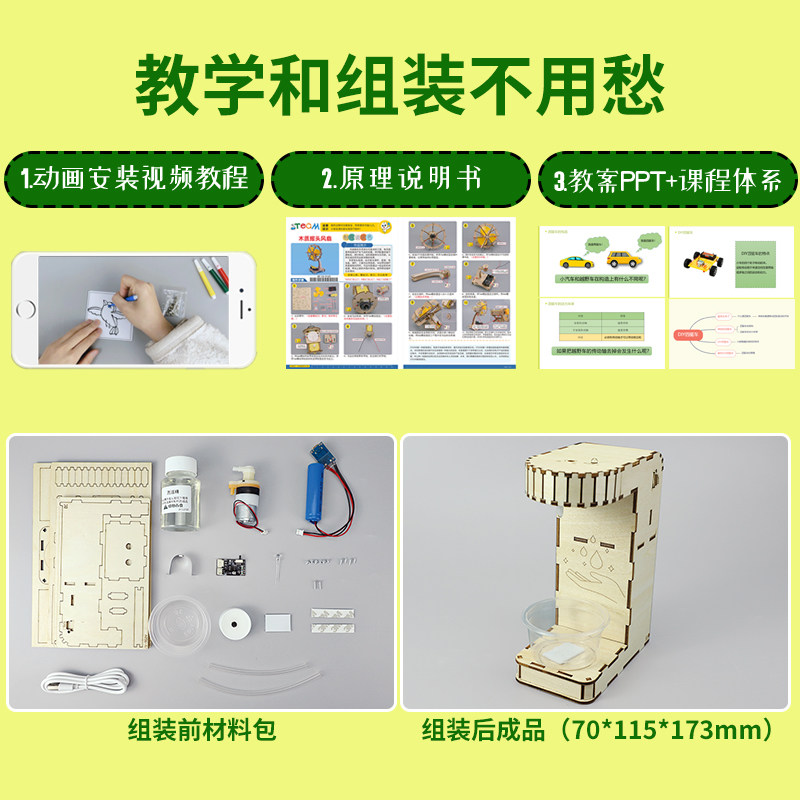 📚 科学小实验手工智能洗手机儿童拼装电路玩具科技发明小制作一等奖