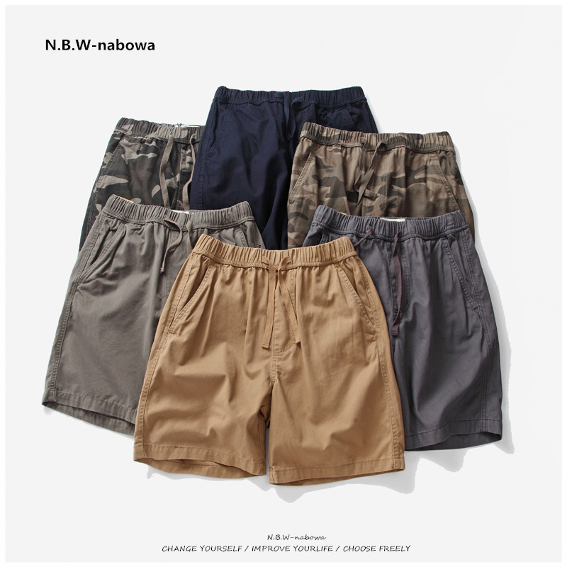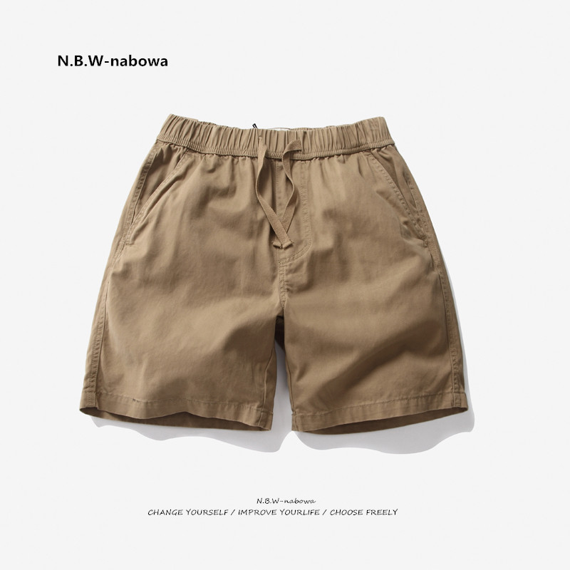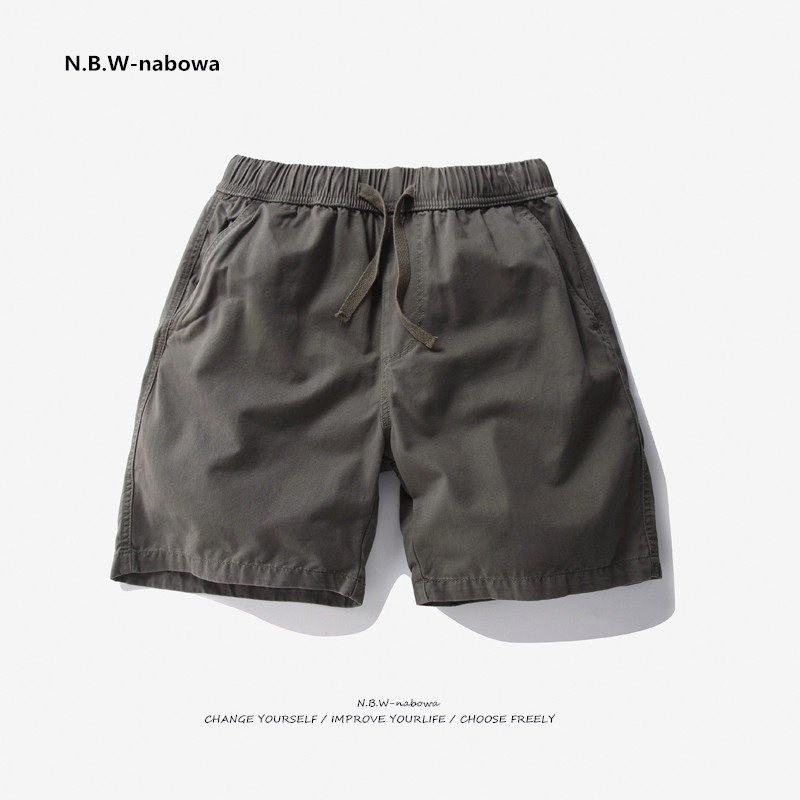 📚 NBW休闲短裤男款纯棉 美式简约松紧腰四分休闲裤工装裤日系复古潮