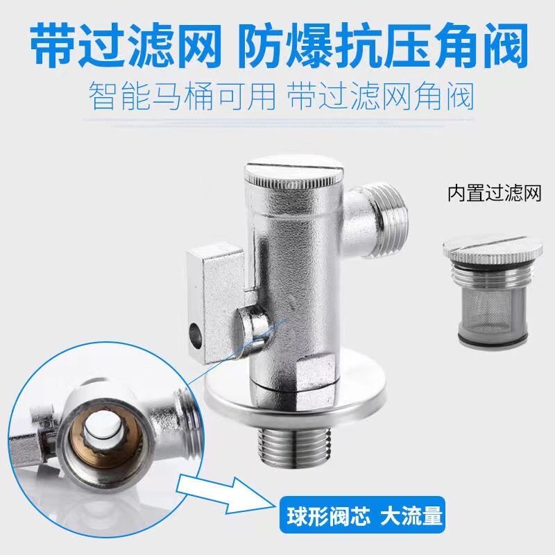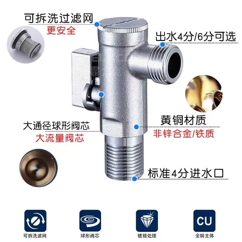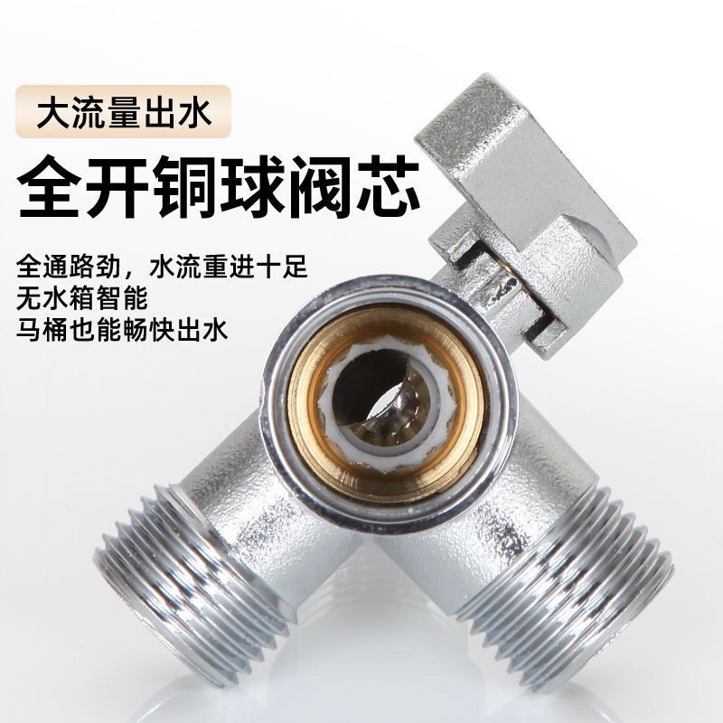 📚 大流量角阀一进二出三通马桶专用4分6分洗衣机水龙头黄铜带过滤网