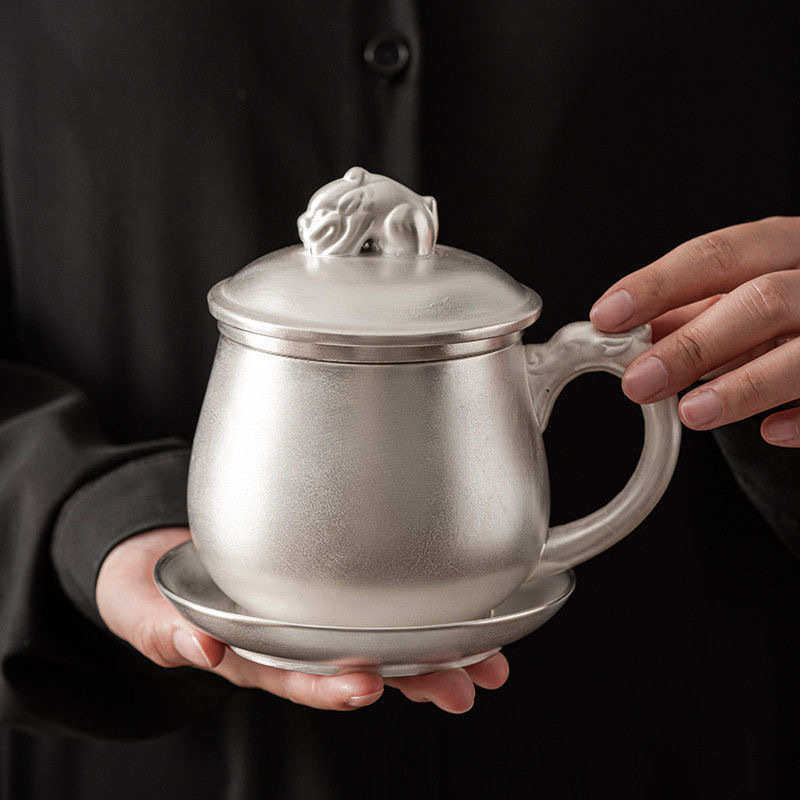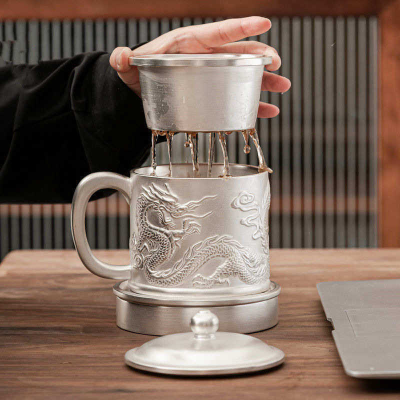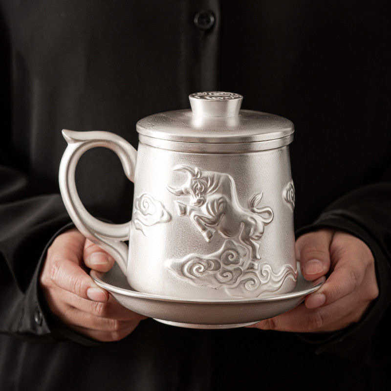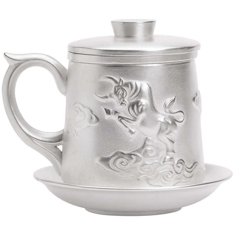 📚 茶具礼品真银包银水杯个人办公高档紫砂鎏银茶杯茶水分离带过滤盖