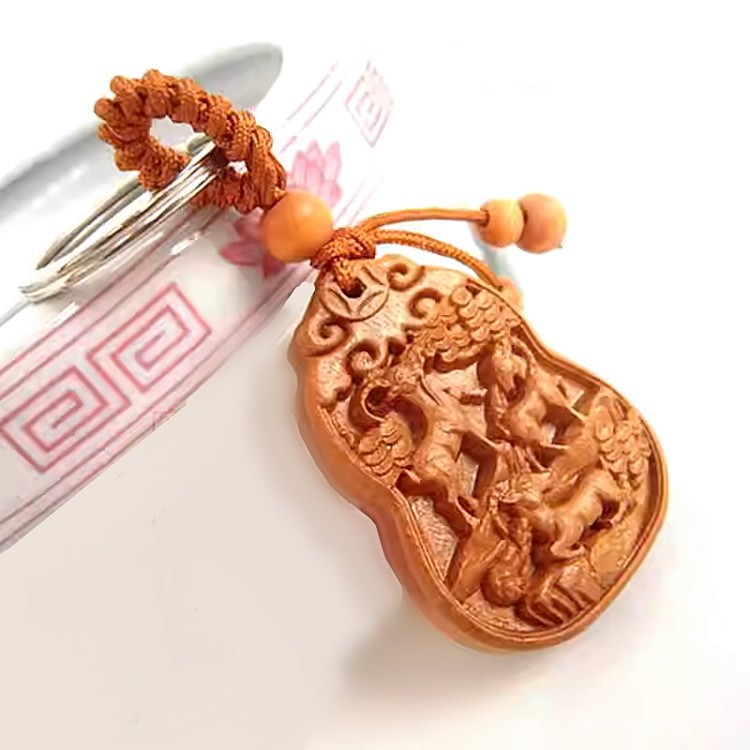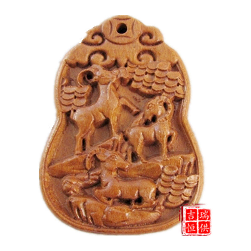 📚 桃木三羊开泰钥匙扣项链随身包包车挂件装饰雕刻礼品三阳吉祥吊坠