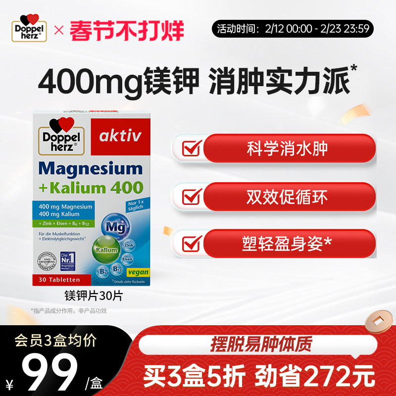 📚 德国双心镁钾片祛水肿祛湿非柠檬酸镁钾电解质利尿消水丸祛浮肿