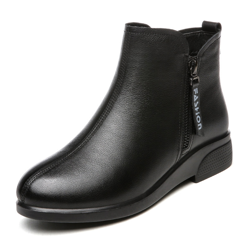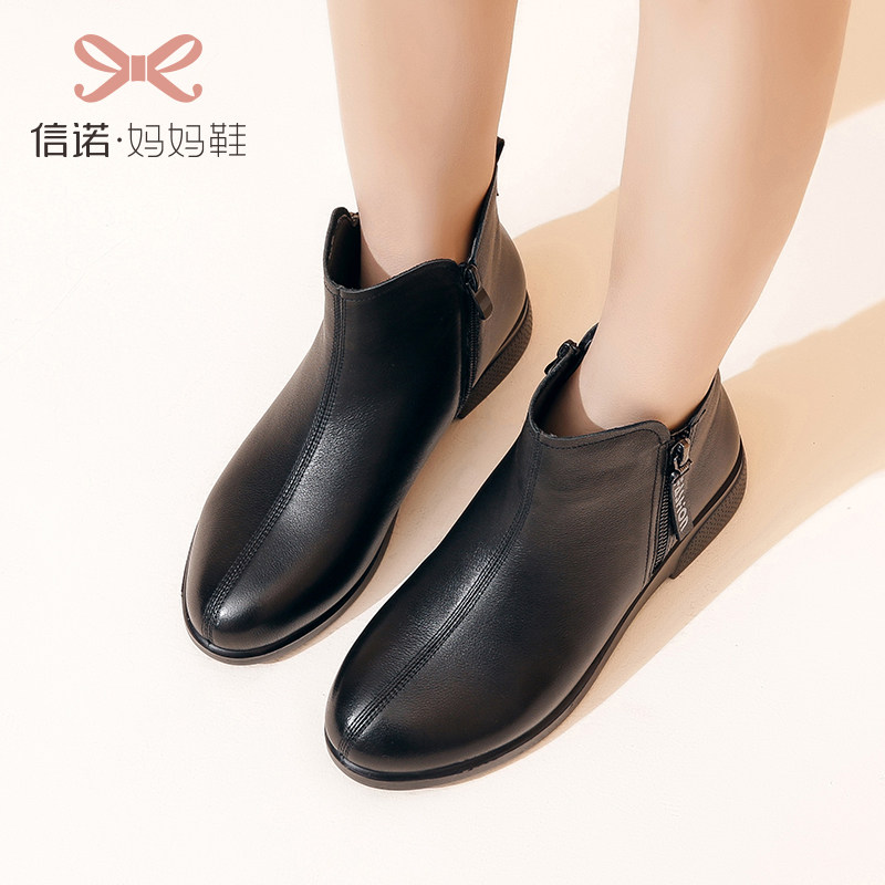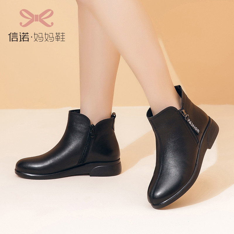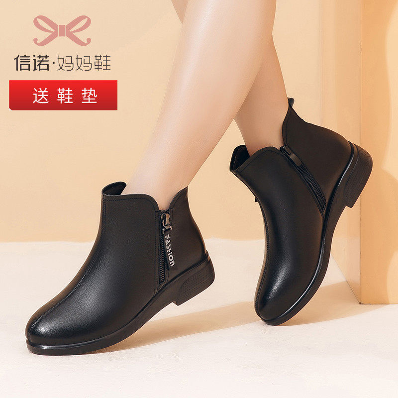 📚 信诺妈妈皮鞋真皮秋冬款加绒保暖二棉鞋冬季新款中老年女软底短靴