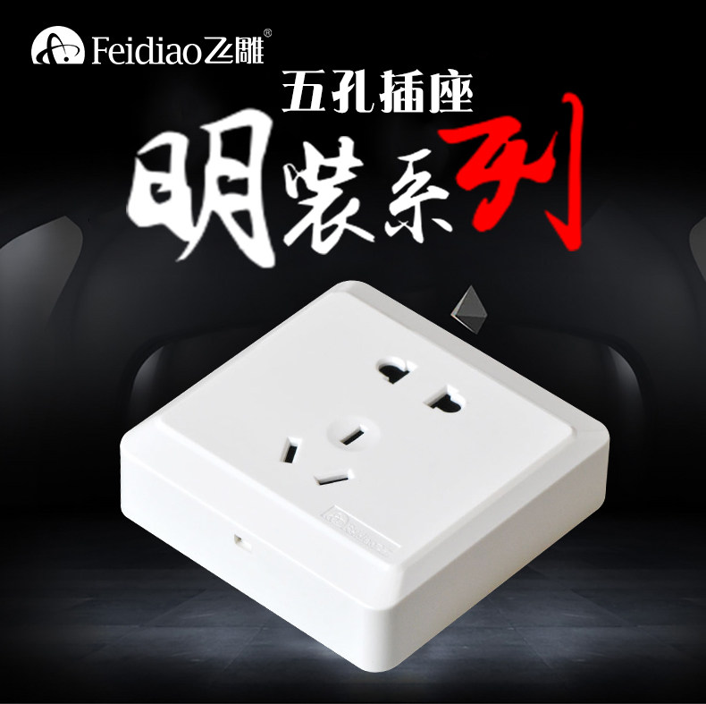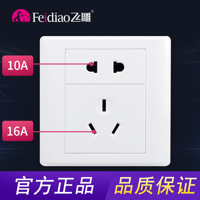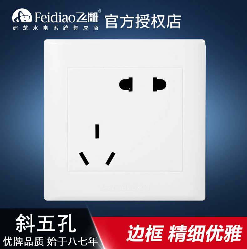 📚 飞雕斜五孔错位五孔空调插座16A大功率开关面板家用热水器暗明装