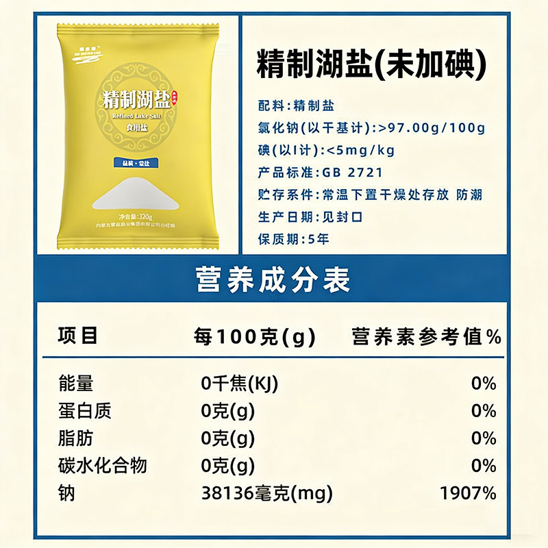 📚 母亲湖草原湖盐320g*5包无碘食用盐低钠家用炒菜调味0添加抗结剂