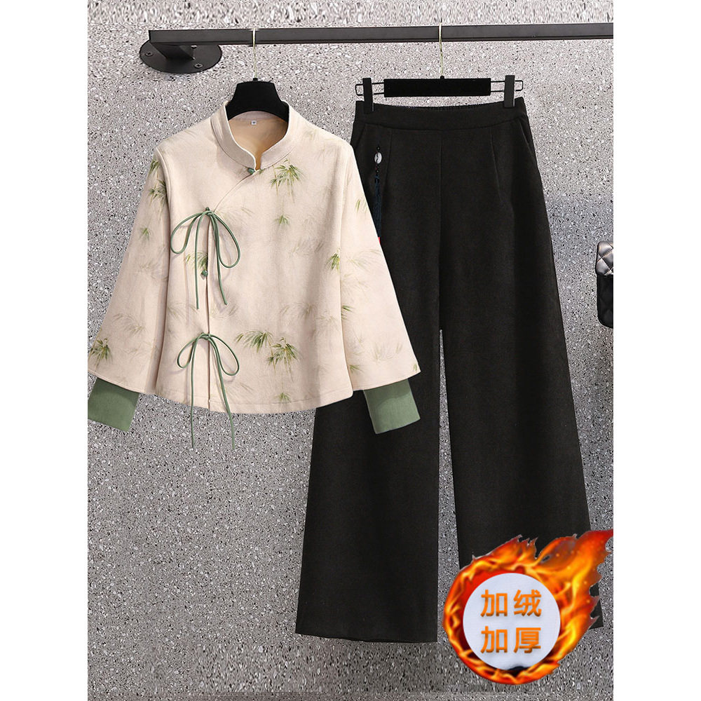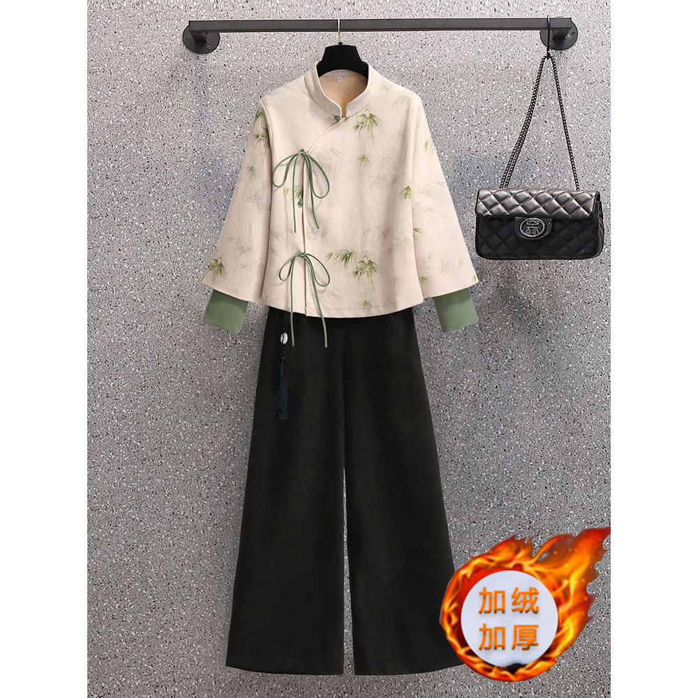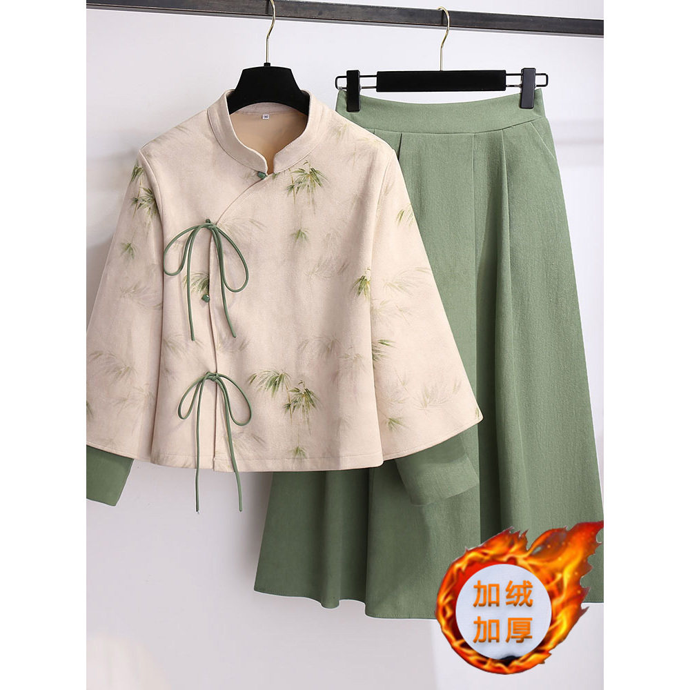 📚 秋冬汉服加绒加厚旗袍茶服唐装两件套养生馆采耳茶艺师工作服装女