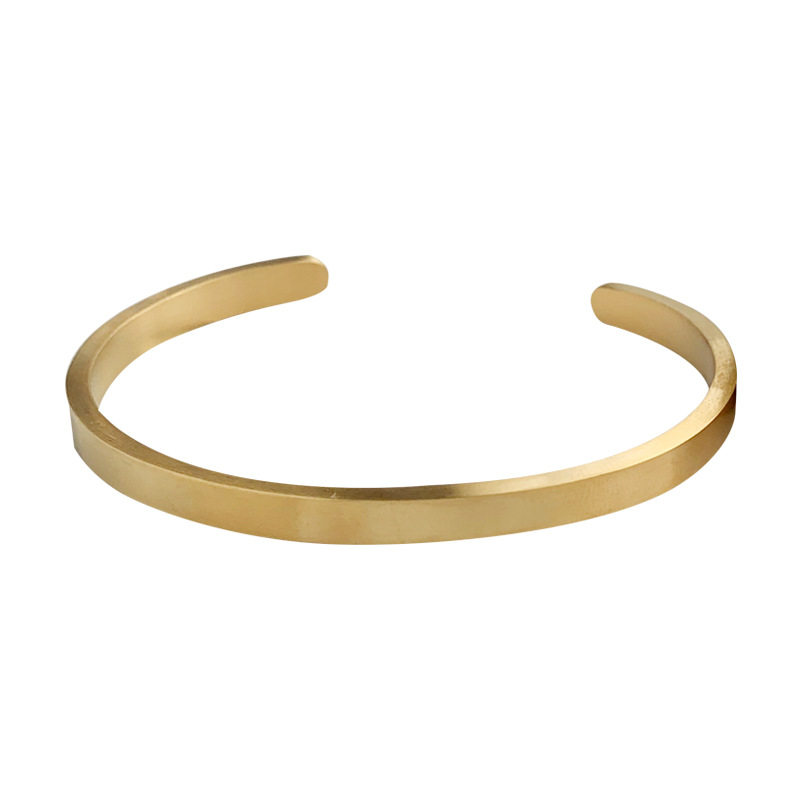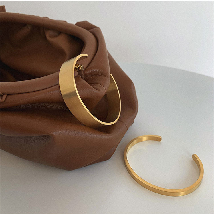 📚 欧美金色宽面拉丝钛钢镀18K金手镯手环女INS网红简约冷淡风高品质