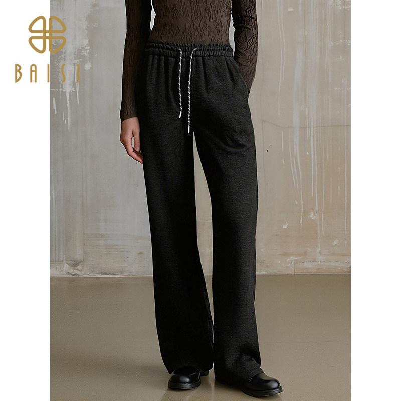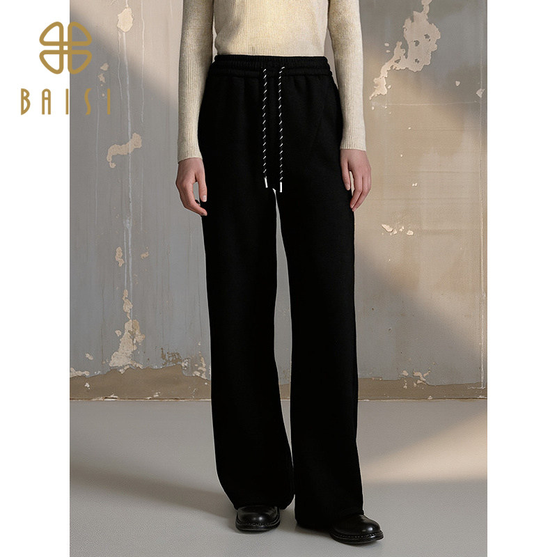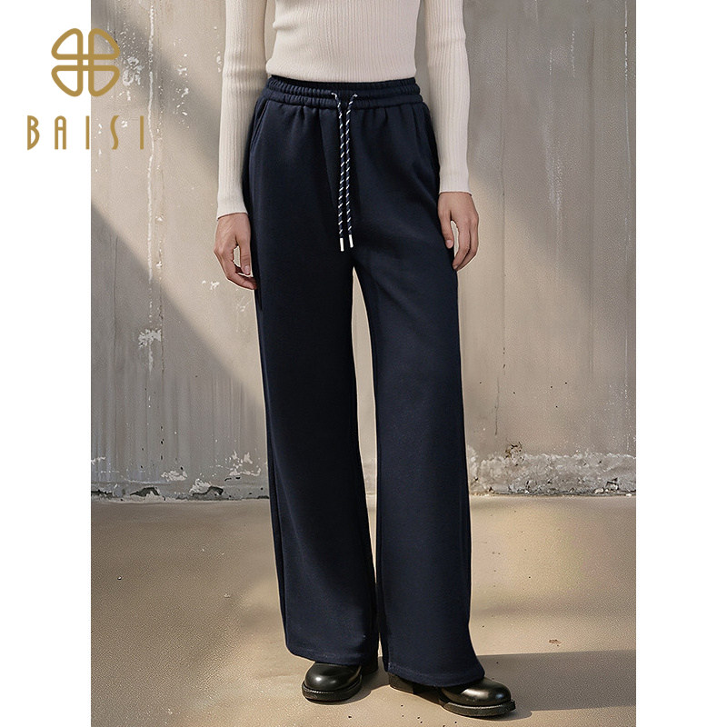 📚 2025冬季新品百丝绑绳弹力松紧直筒运动休闲卫裤宽松加绒长裤女