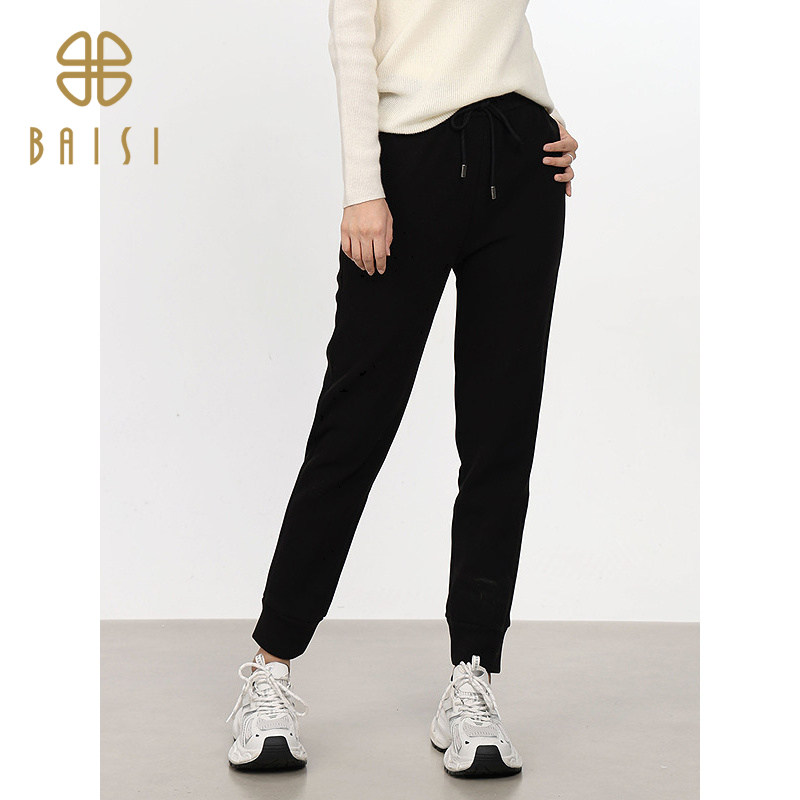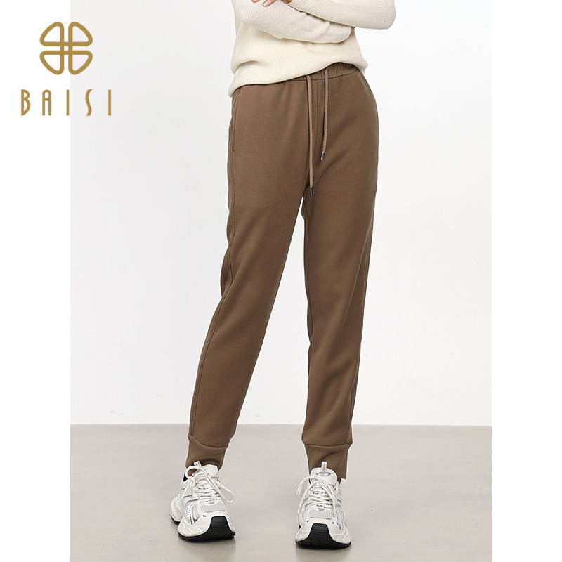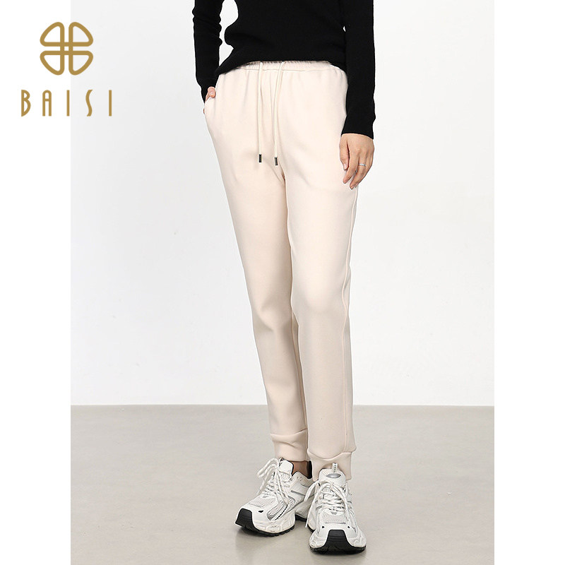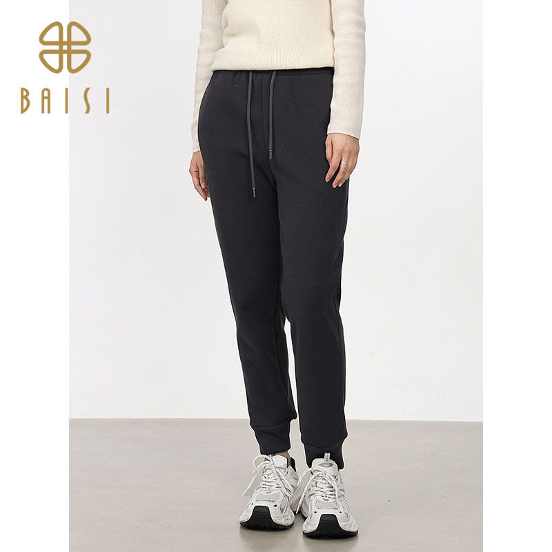 📚 百丝/BCVOGA宽松显瘦卫裤2024秋新品绑绳束脚运动休闲加绒长裤女