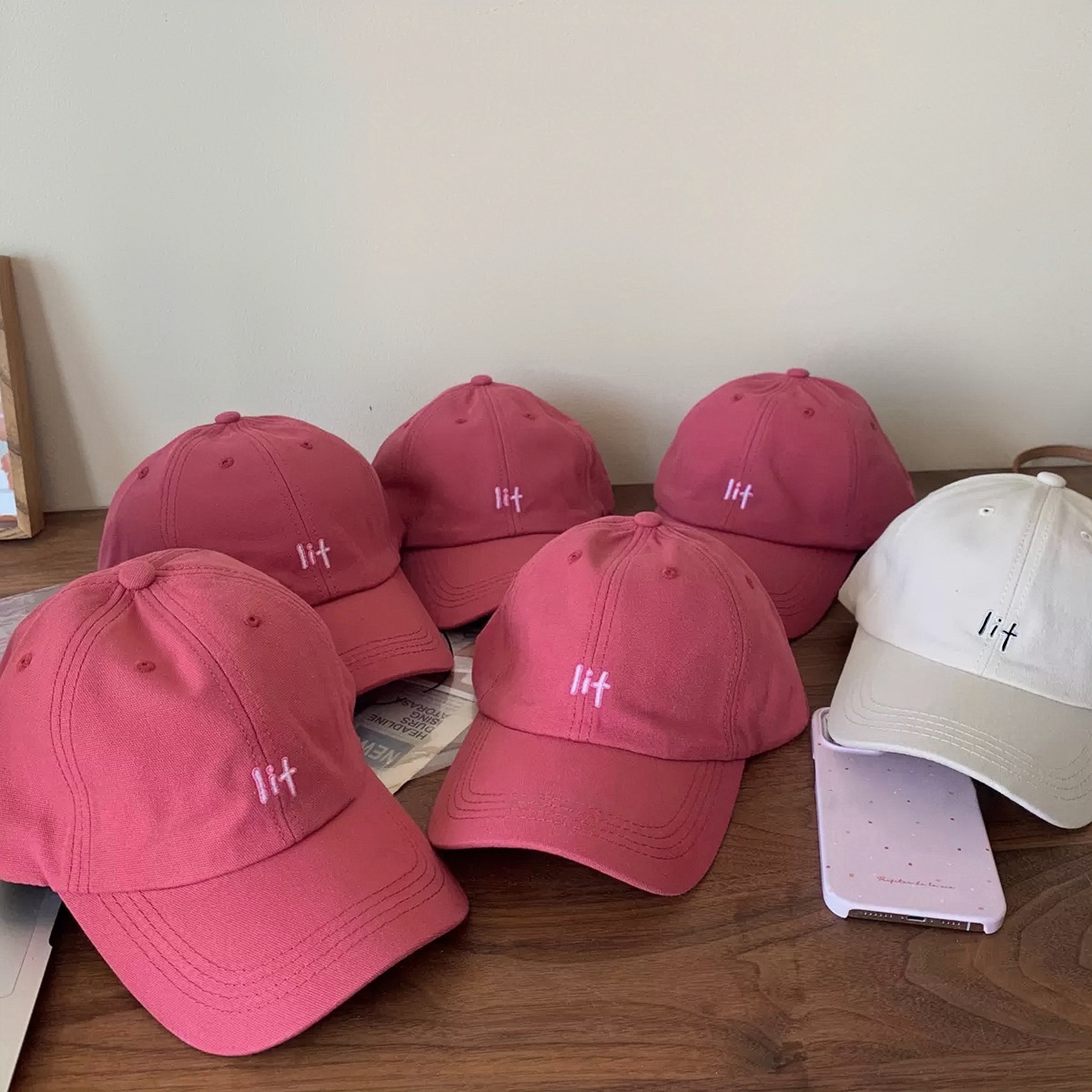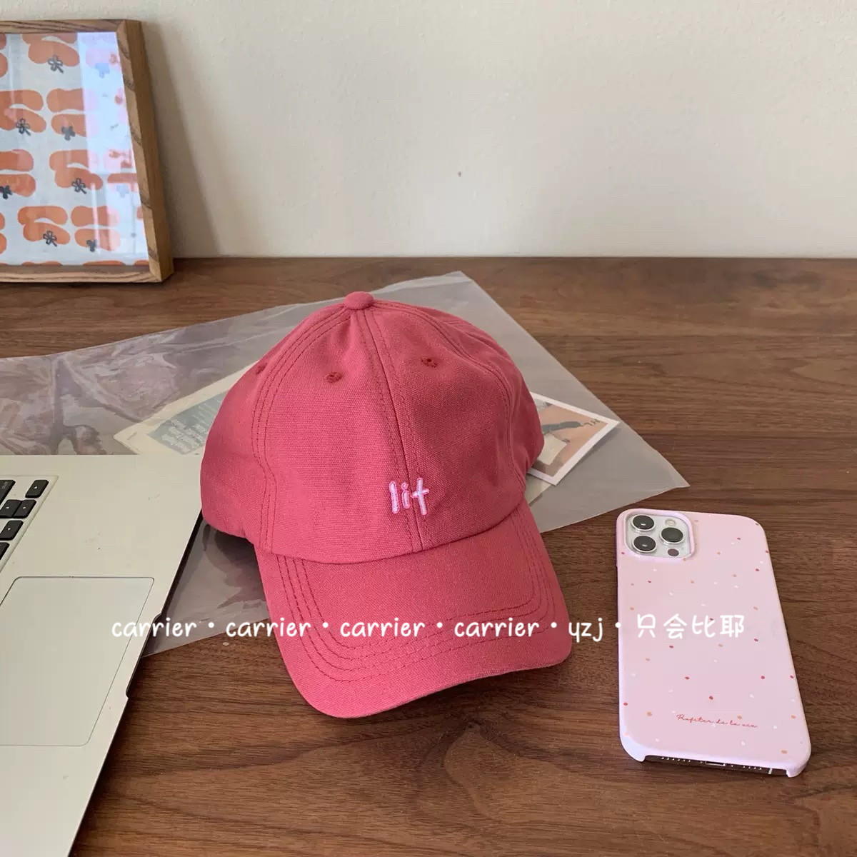 📚 店主甄选~超显白韩版树莓红棒球帽纯棉百搭遮阳字母刺绣情侣帽子