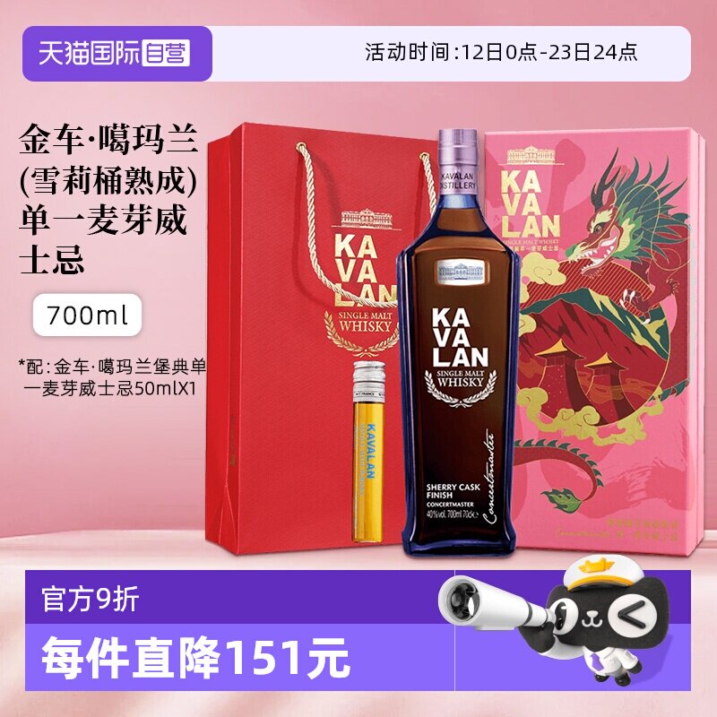 📚 【自营】KAVALAN噶玛兰雪莉桶单一麦芽威士忌进口洋酒 年货送礼