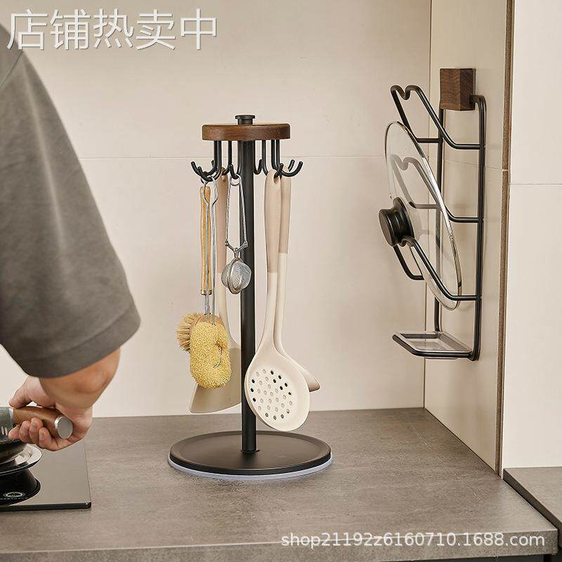 📚 厨房旋转挂钩台面加高锅铲置物架炒菜汤勺漏勺子铲子厨具挂架神器