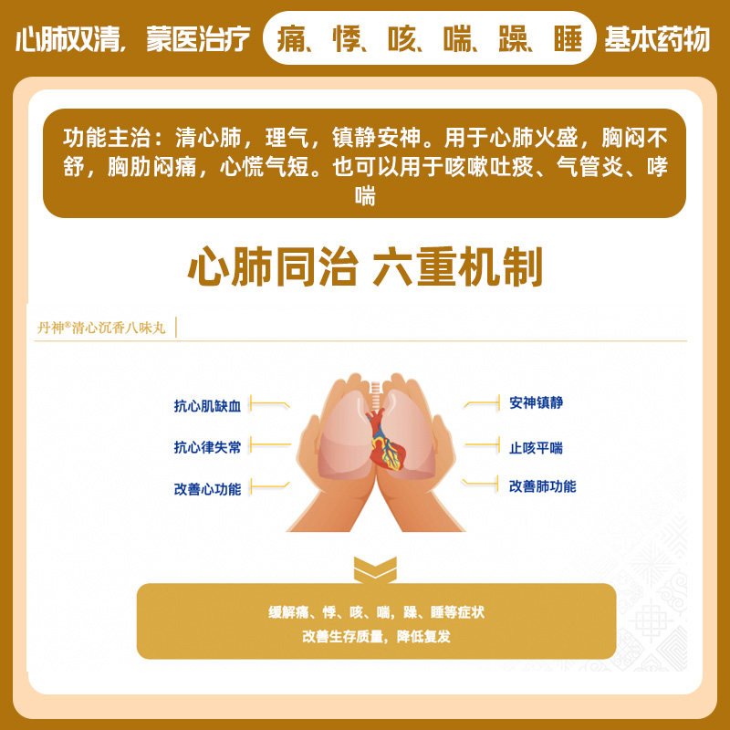 📚 丹神清心沉香八味丸镇静安神焦虑症头晕心慌心悸气短蒙药胸闷气短