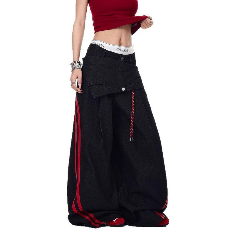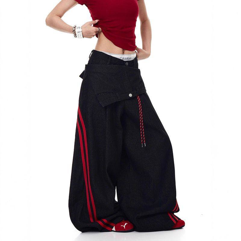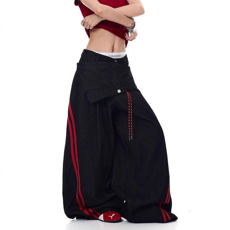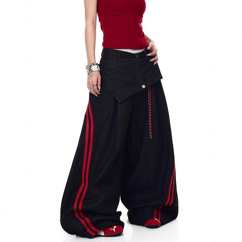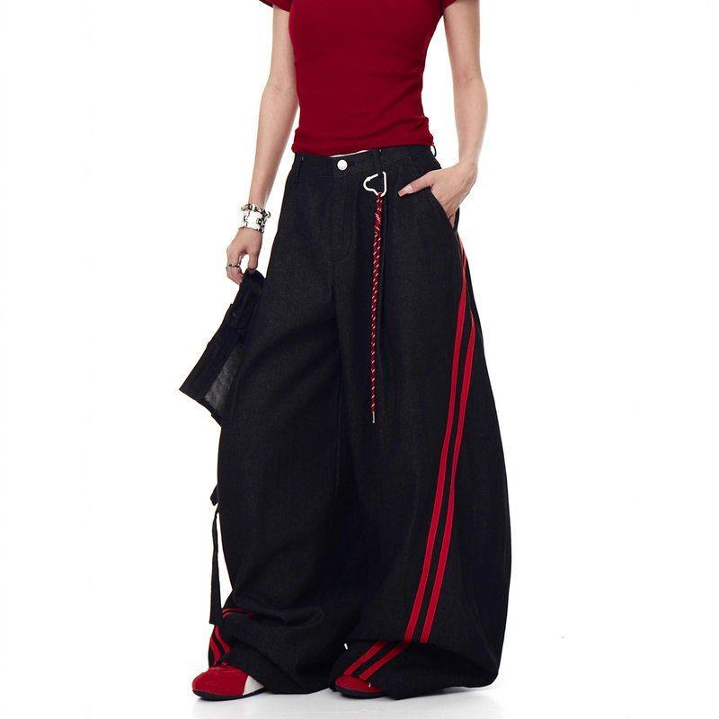 📚 三道杠伞兵户外运动hiphop裤子条纹外贸降落伞裤子美式直筒工装裤