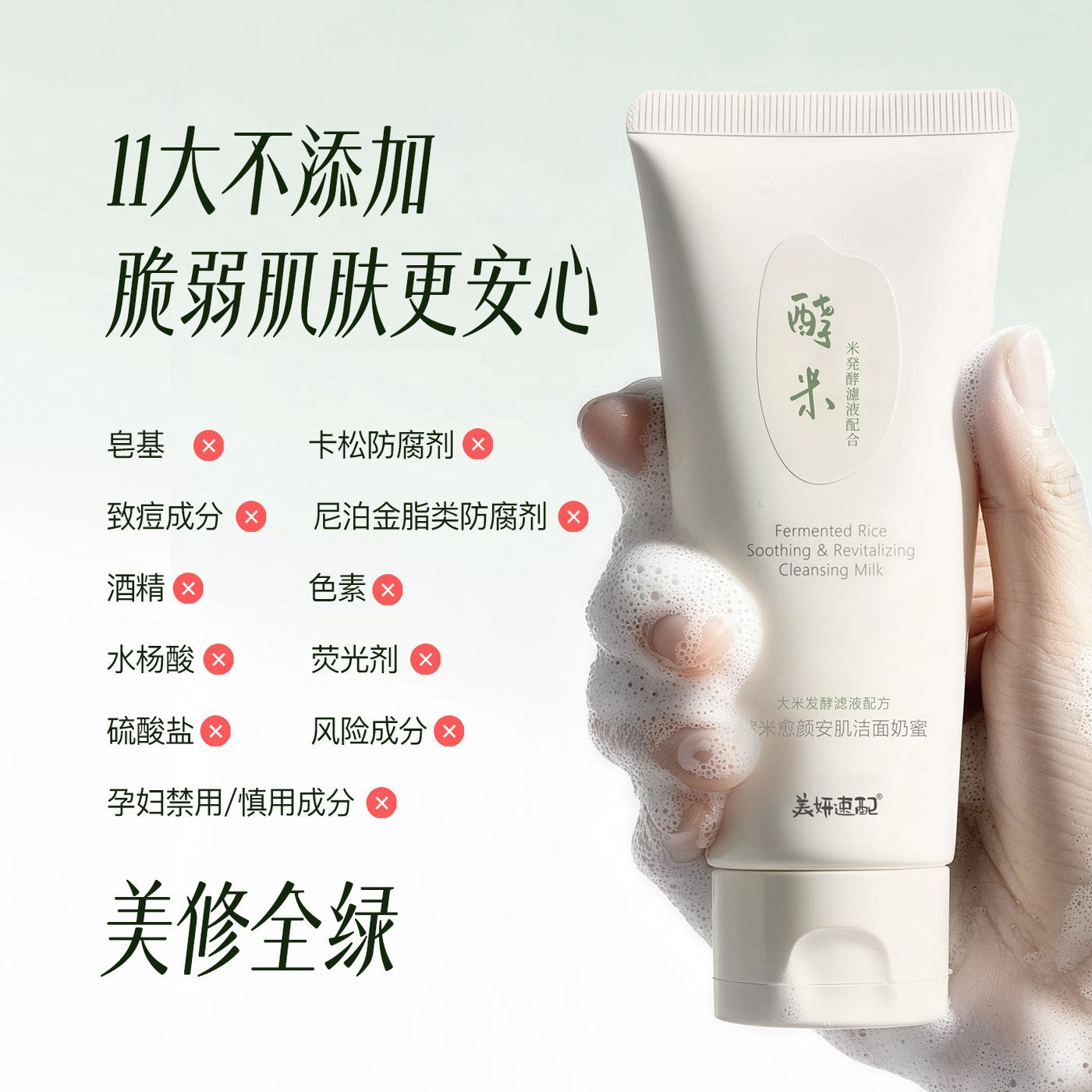 📚 美妍速配酵米安肌洁面奶蜜温和舒缓净澈绵密泡沫洗面奶保湿男女