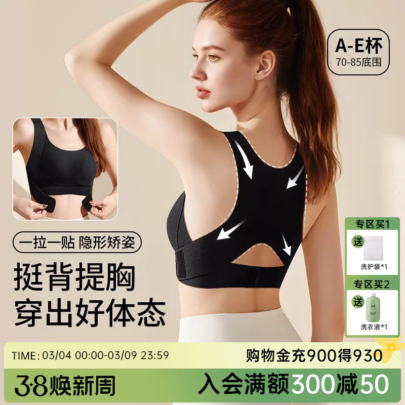 📚 润微大胸隐形矫姿挺背内衣女士聚拢小胸前扣式无痕一体美背文胸罩