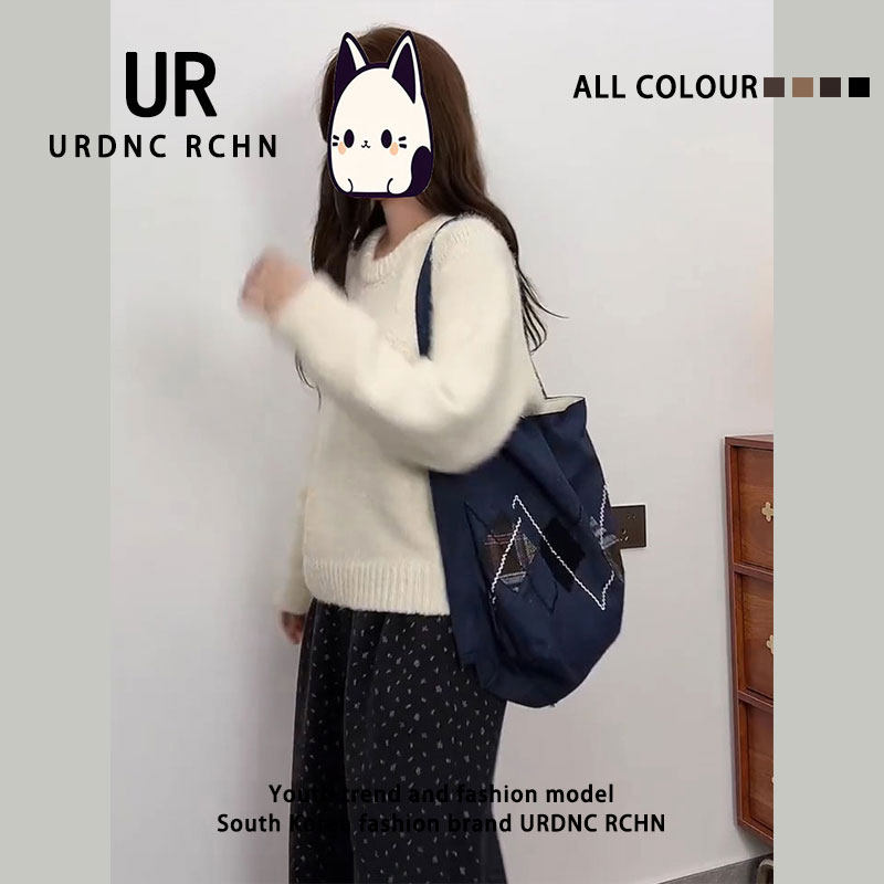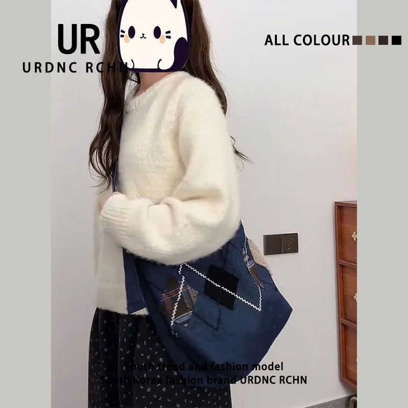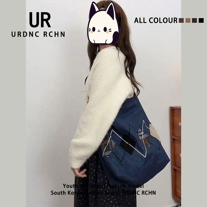 📚 UR原创新款手工刺绣加厚牛仔帆布包女宽带百搭单肩腋下斜挎托特包