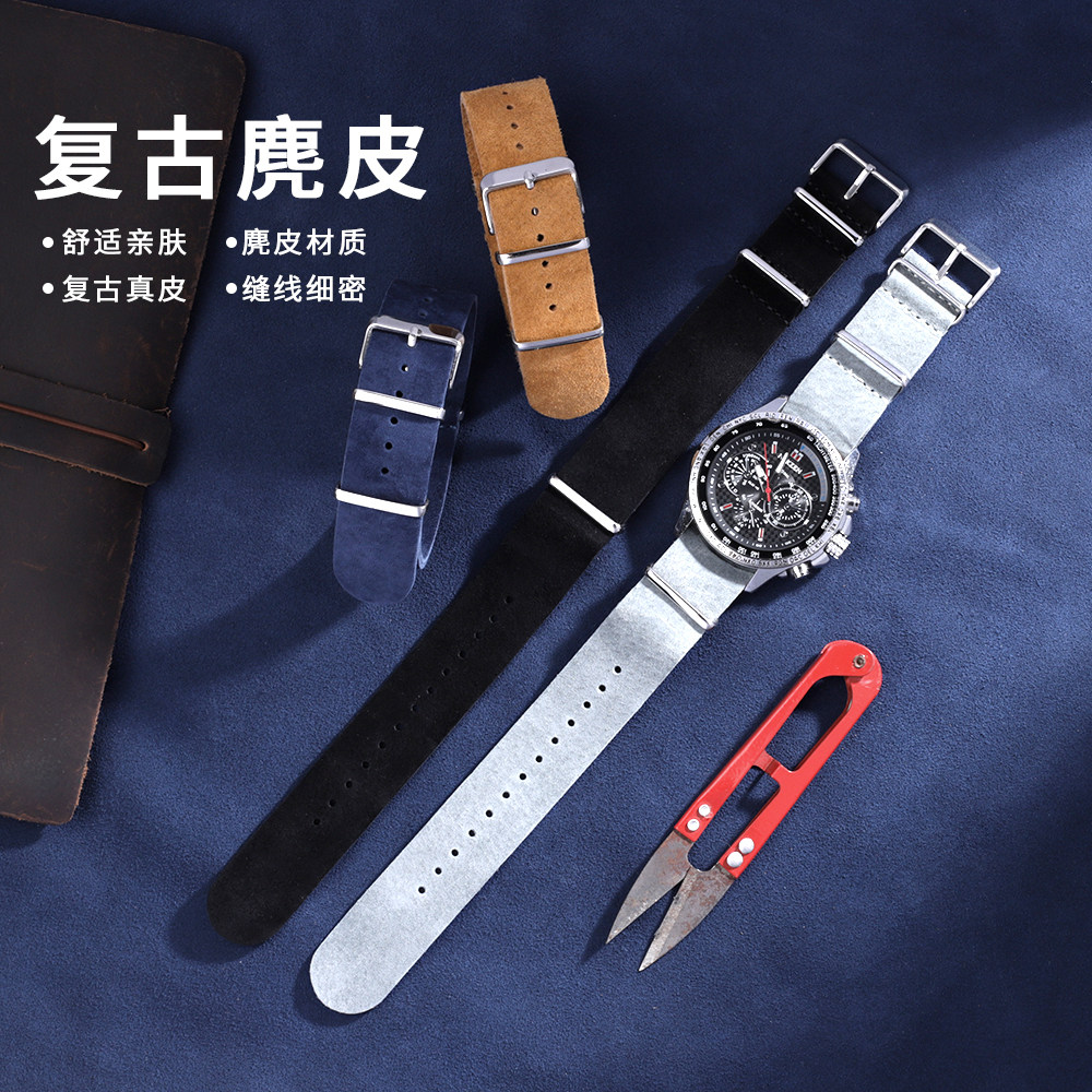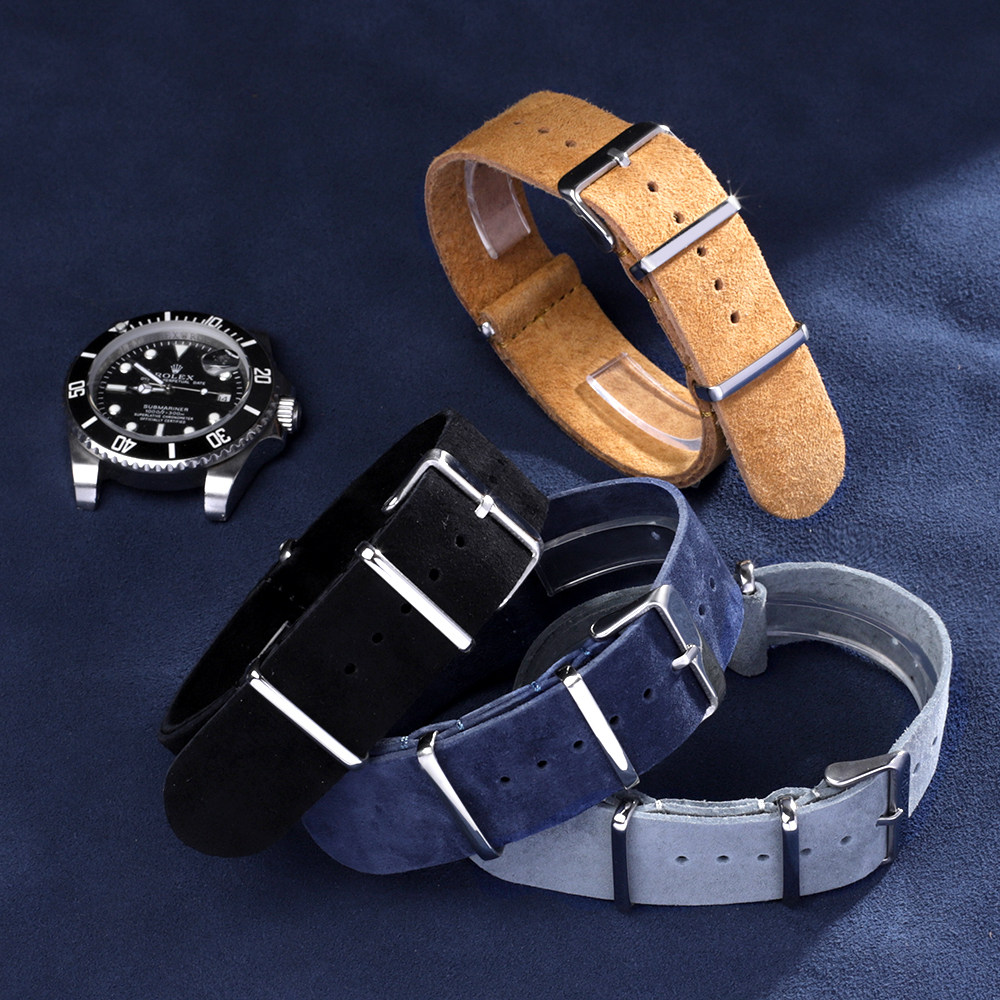 📚 复古翻毛皮长表带适配劳力士水鬼精工DW 真皮手表带柔软20 22mm