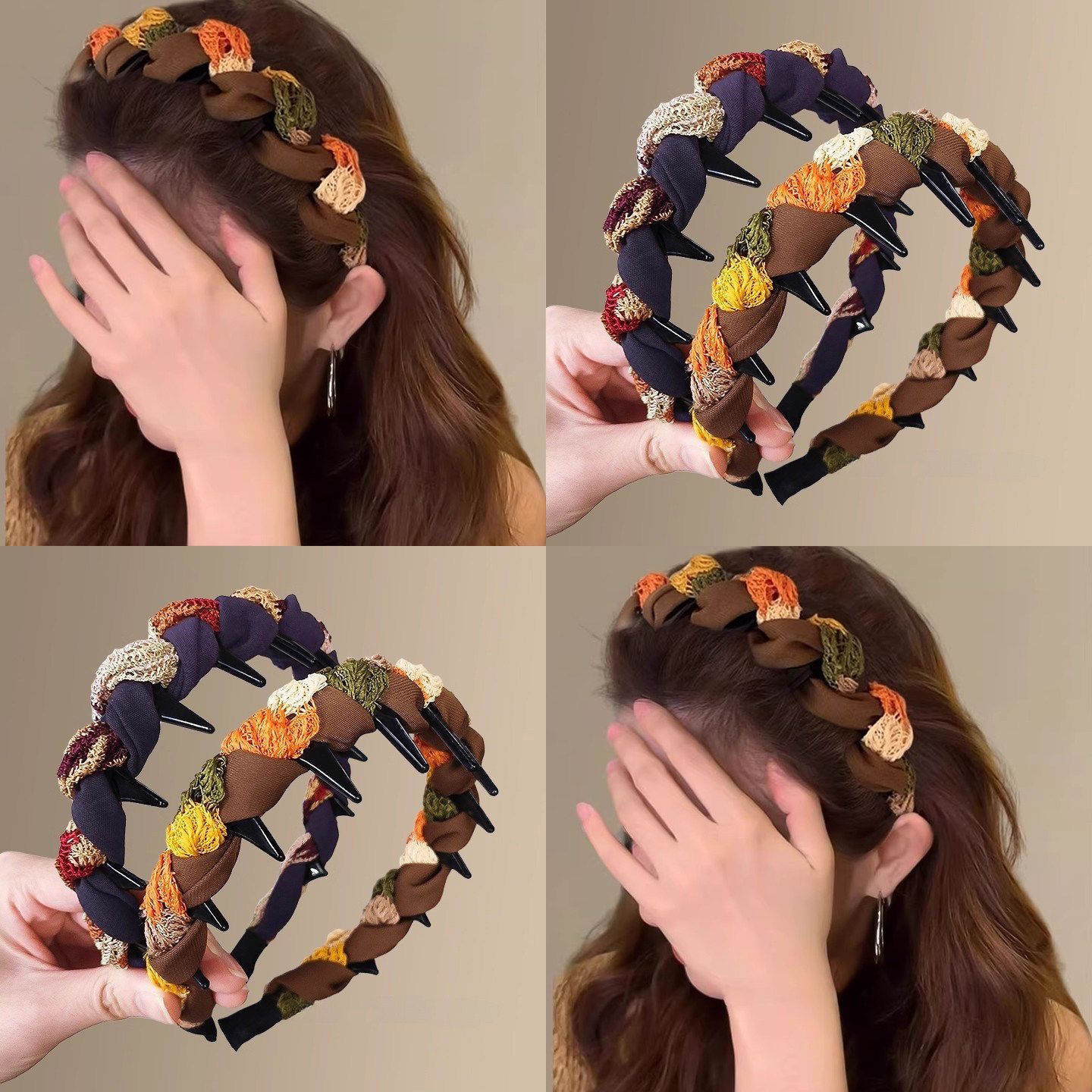 📚 美拉德咖色绕线波浪带齿发箍女高级感日常外戴防滑高颅顶发卡头饰