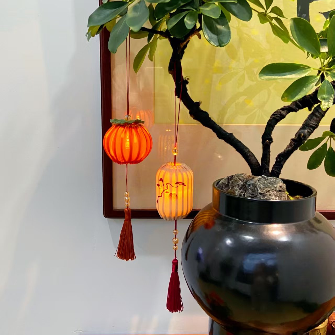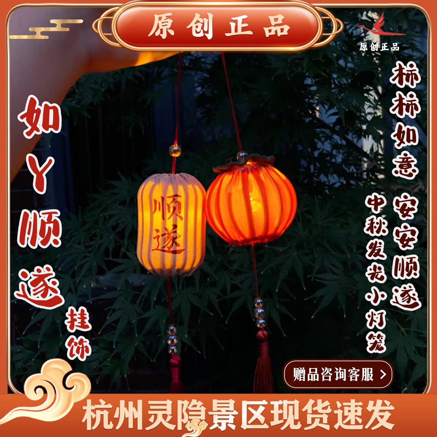 📚 灵隐文创如意顺遂柿柿如意平安顺遂中秋发光小灯笼挂饰2695