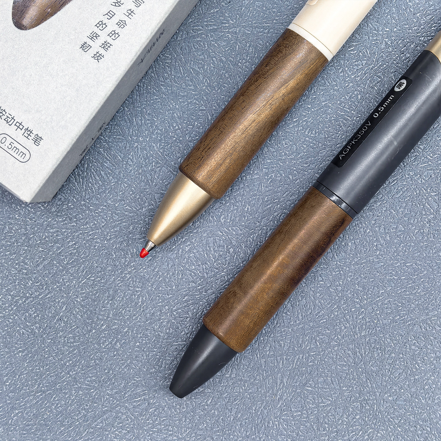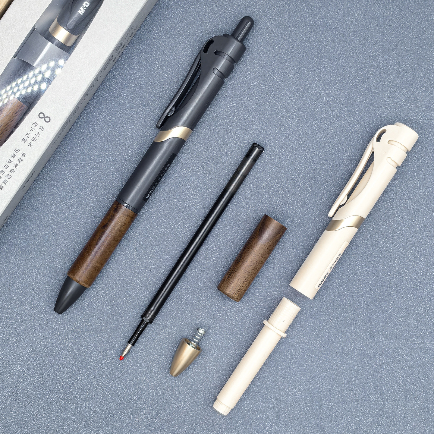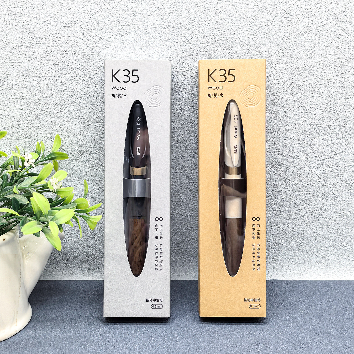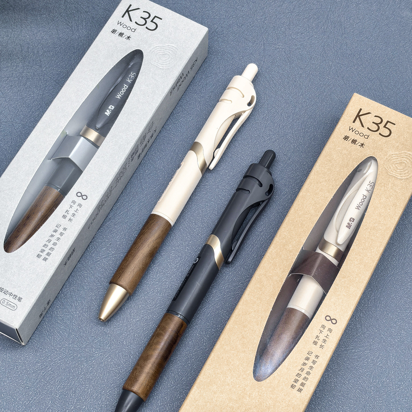 📚 晨光 K35胡桃木按动中性笔0.5mm黑色速干油墨子弹头笔尖天然木质护套学生教师办公记事务笔K350V文具