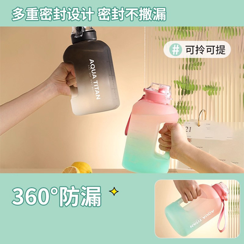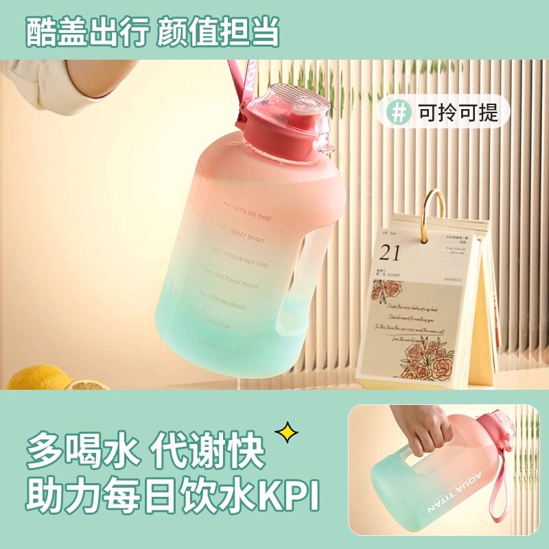 📚 味之享大容量水杯女生运动水壶健身水桶男士吨桶网红大肚杯顿顿桶