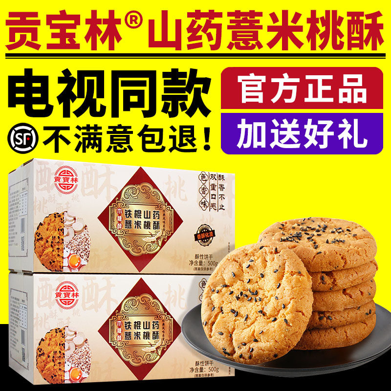 📚 电视同款贡宝林山药薏米桃酥铁棍山药薏米苦荞燕麦木糖醇桃酥饼干