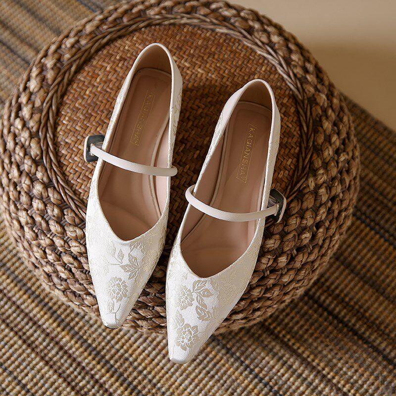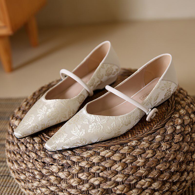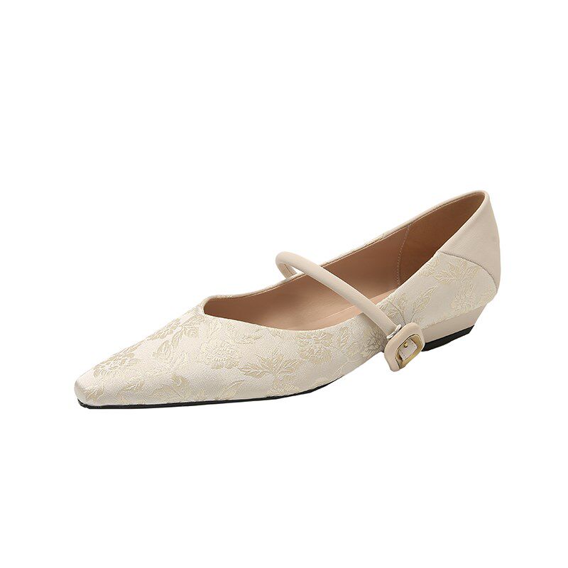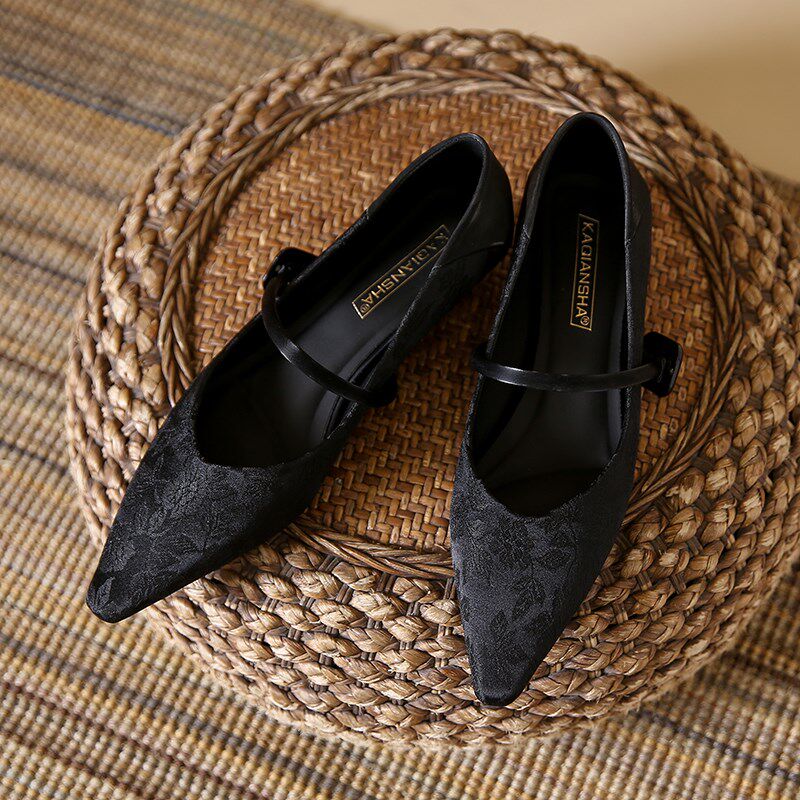 📚 速发新中式国风复古玛丽珍鞋低跟浅口鞋配旗袍缎跟质花平面气提单