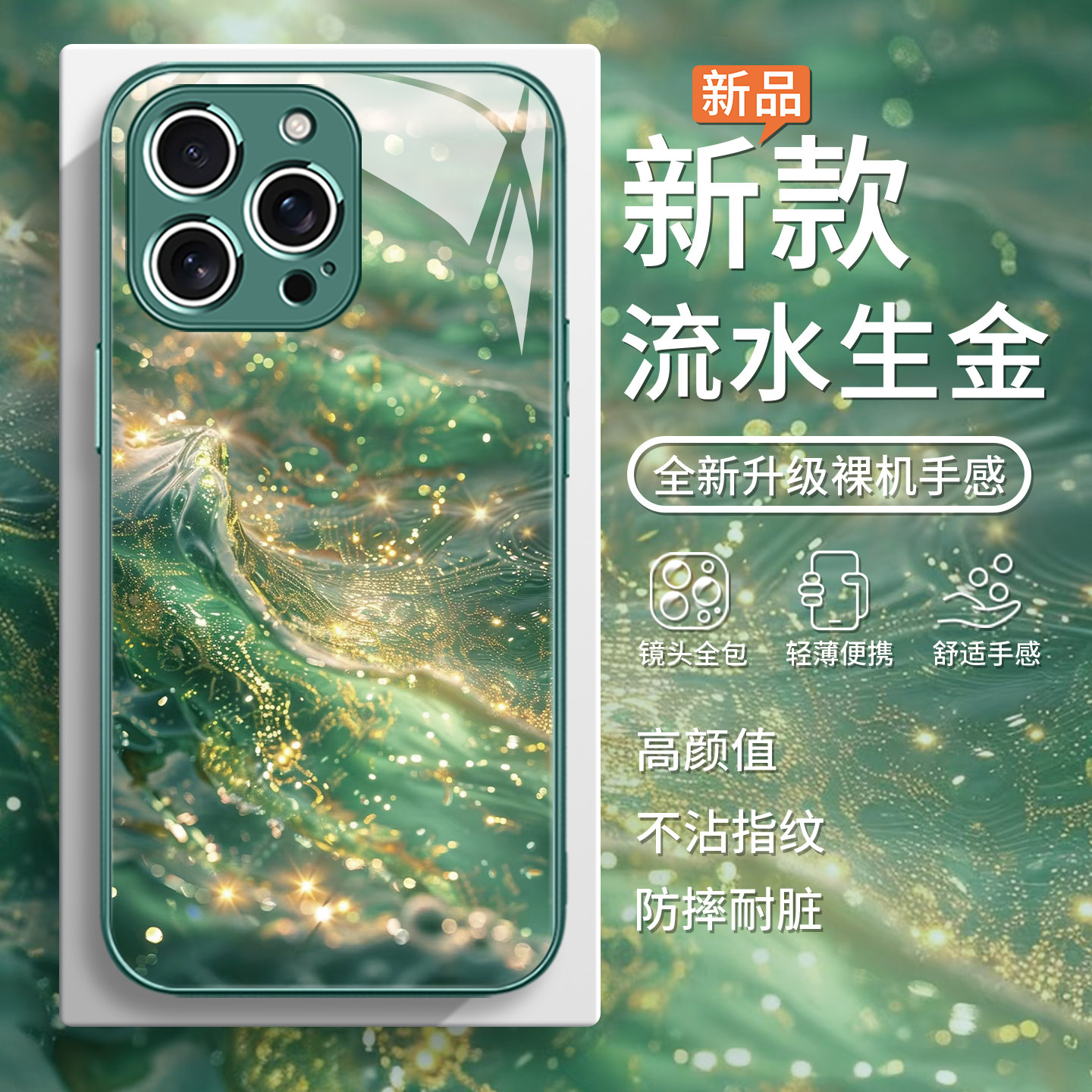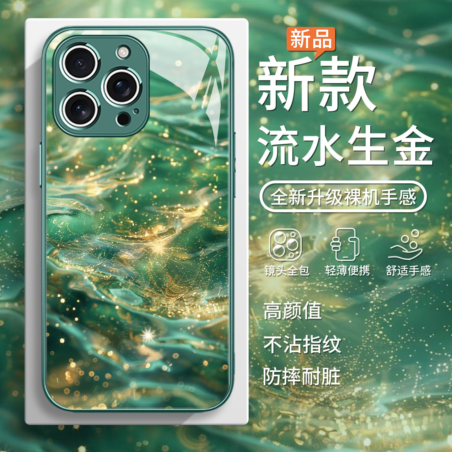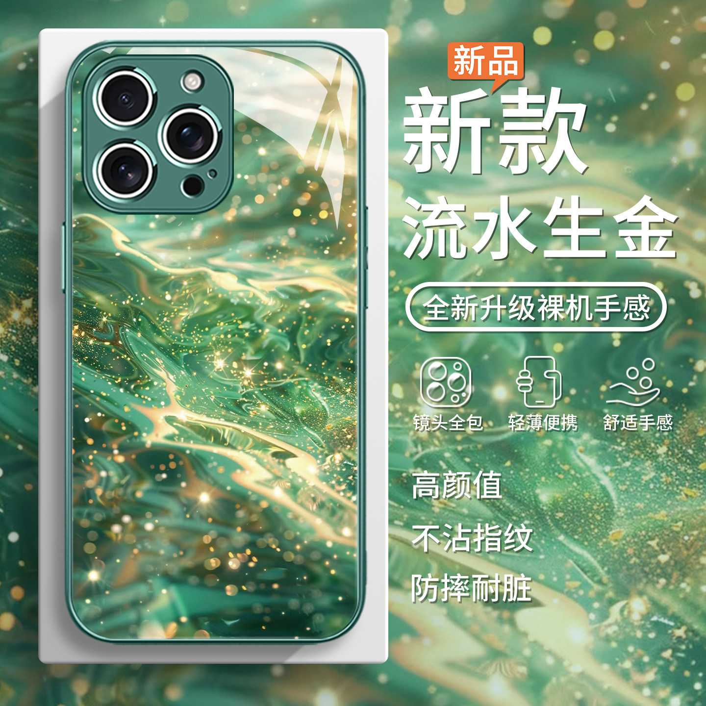 📚 适用流水生金苹果16pro手机壳iphone14新款17/15promax高级感13mini创意plus发财好运苹果12绿色11小众玻璃x