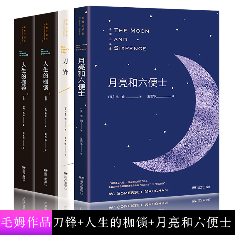📚 全4册 毛姆三部曲:月亮和六便士+刀锋+人生的枷锁(上下)外国小说经典小说世界名著外国小说课外阅读书籍畅销书籍正版毛姆精选集