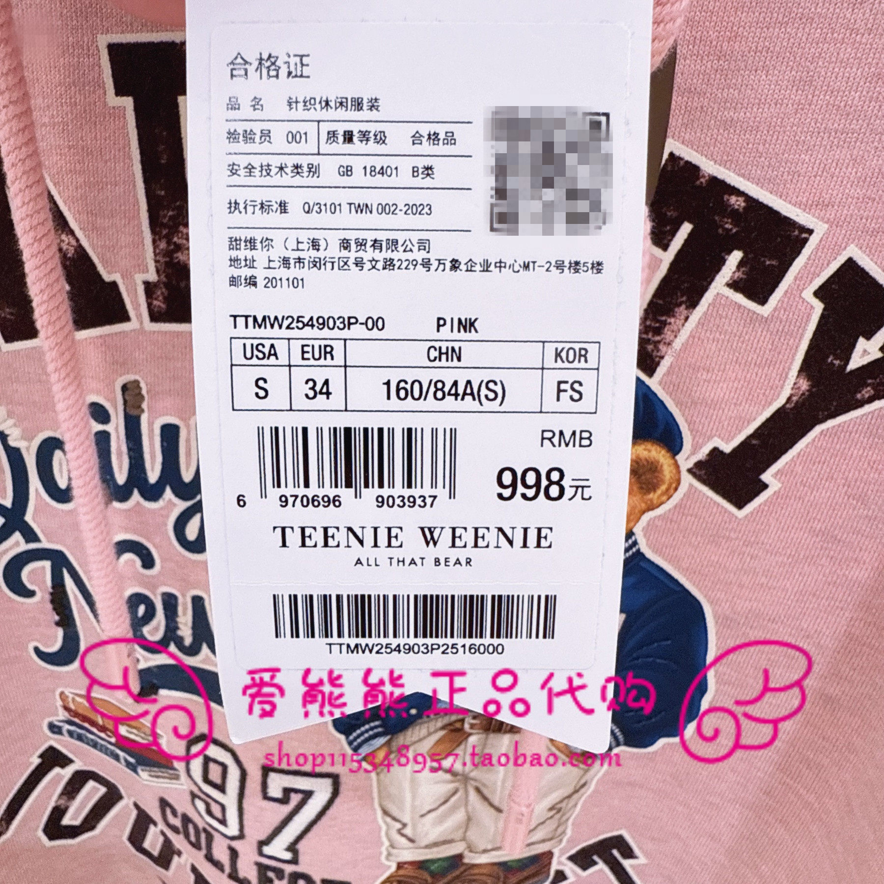 88¥ CZ356 ZHT0ULyYMH2¥ https://m.tb.cn/h.7AR1UZi 现货TeenieWeenie小熊25年冬正品卫衣TTMW254903P-00 MW254903P --------------------- 【原售价】998元 【现售价】399元。