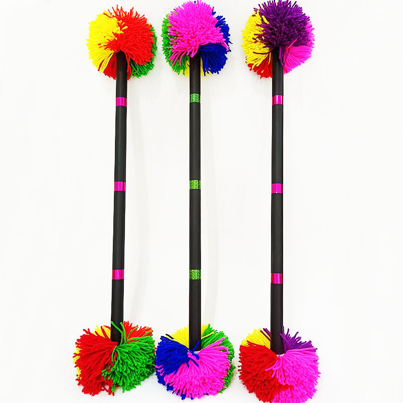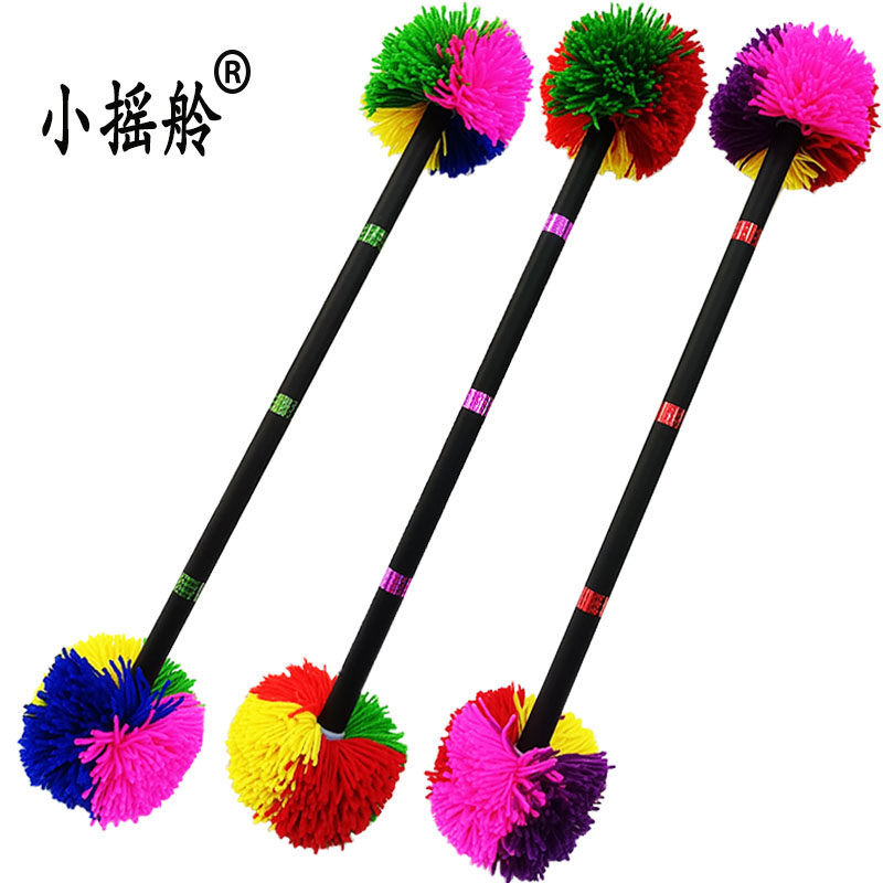 📚 老北京打花棍多彩毛线球小摇舲初学健身龙凤棍整套60-70厘米花杆
