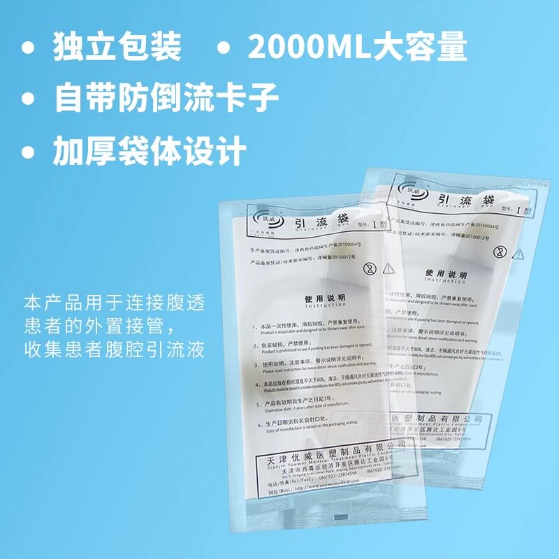 2. 一次性引流袋:使用方便,一次使用后即可丢弃,非常环保。