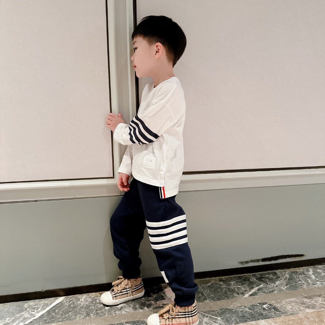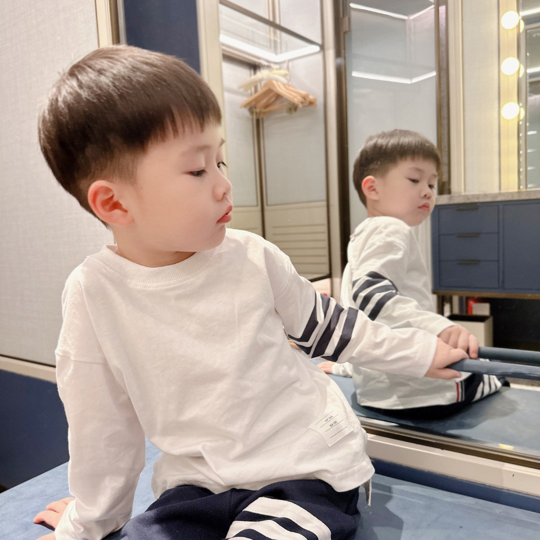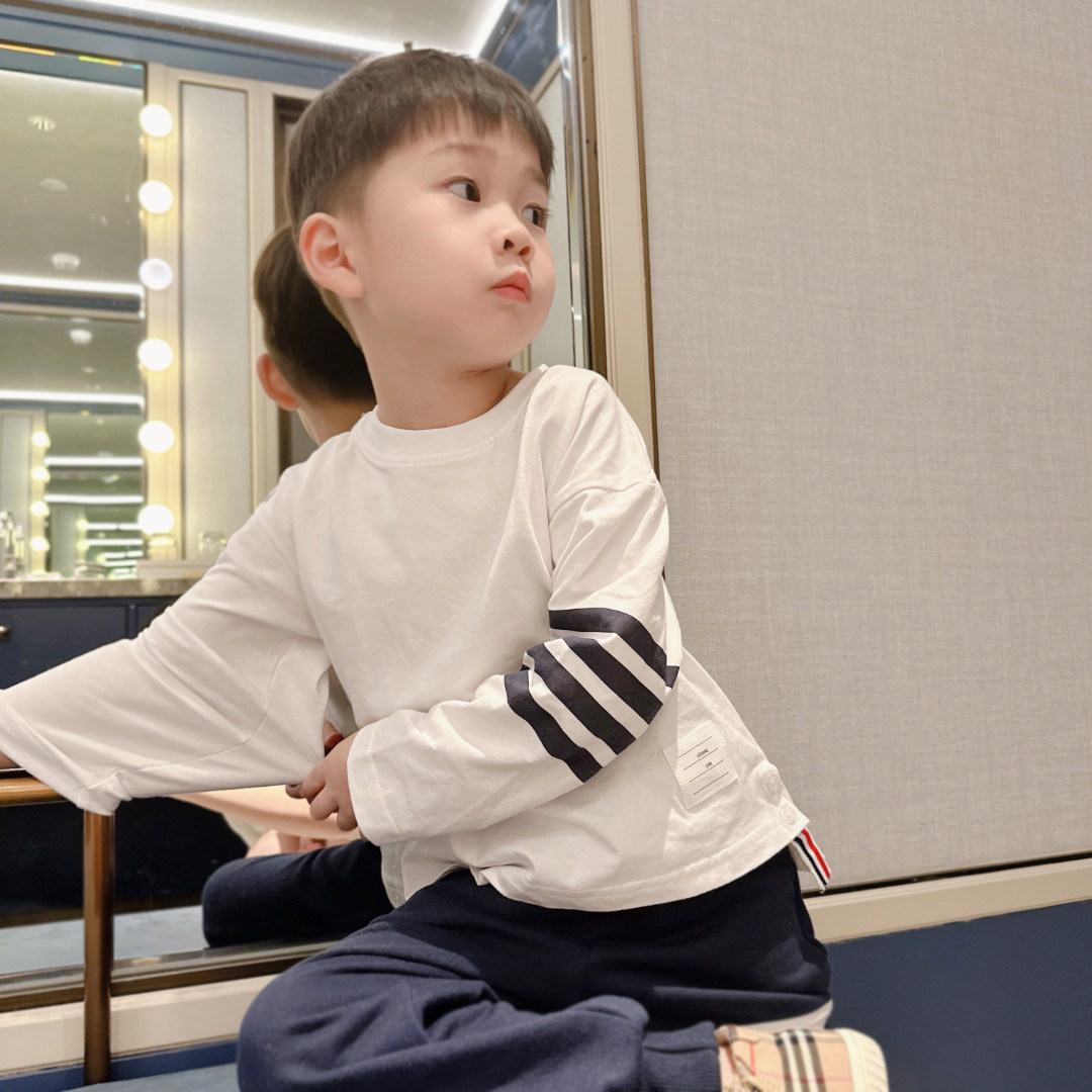 📚 高定童装体恤衫男女童tb长袖T恤春秋款中大儿童上衣打底衫四道杠