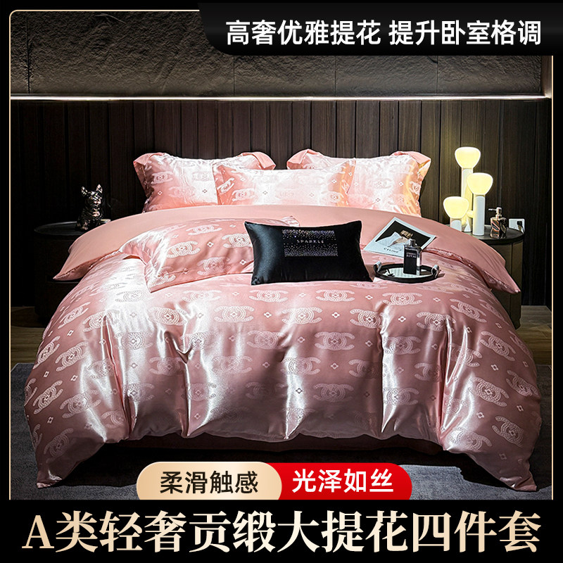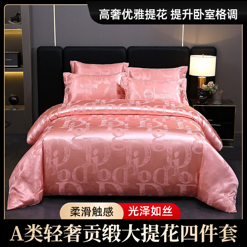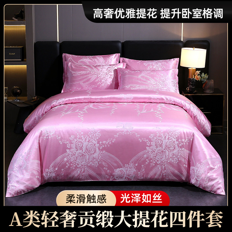 📚 贡缎提花大红色婚庆四件套新婚结婚女方陪嫁喜庆欧式轻奢床单被套
