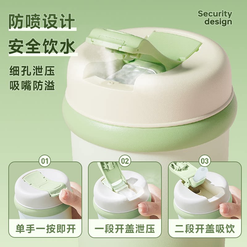 📚 带吸管保温杯女生高颜值316L不锈钢陶瓷内胆水杯子2024新款咖啡杯