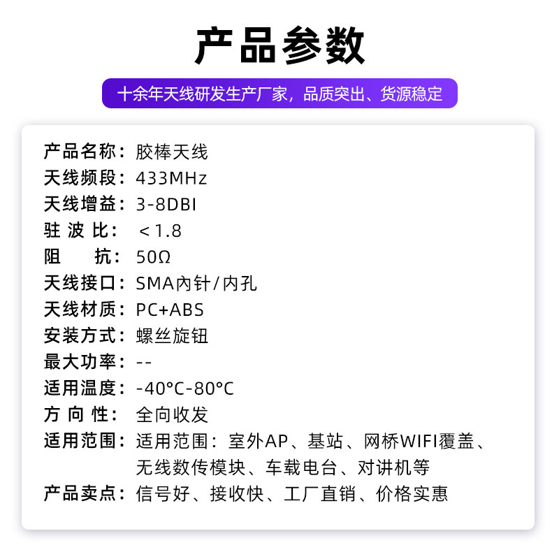 📚 LORA天线433m小辣椒天线433mhz模块小天线433胶棒天线全向SMA内针