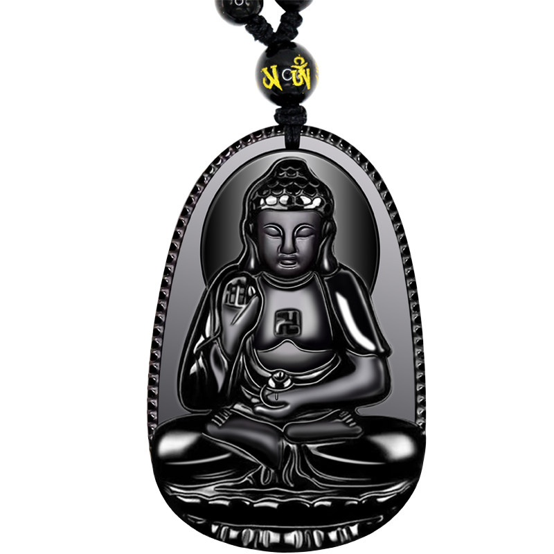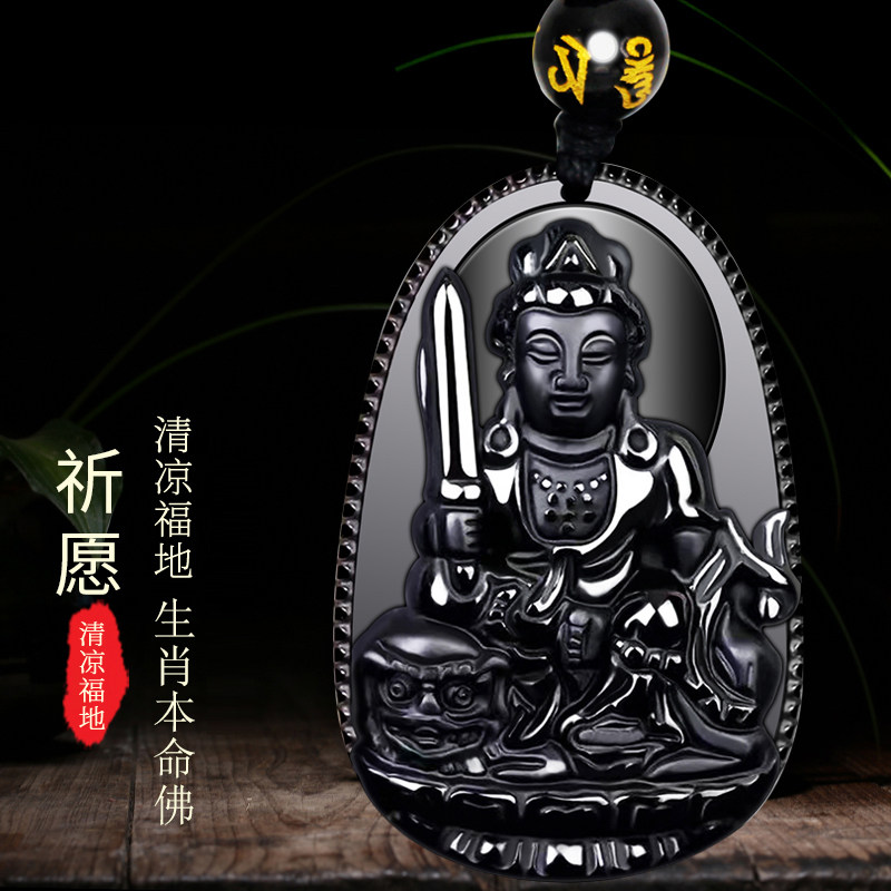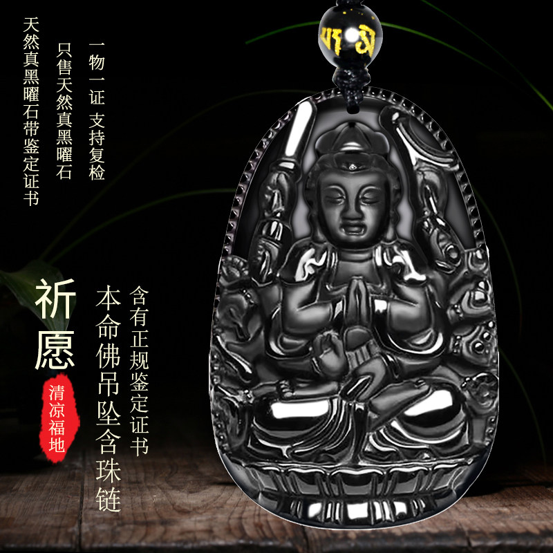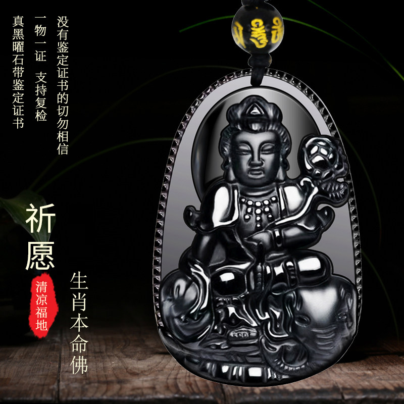 📚 天然黑曜石本命佛吊坠大日如来不动尊虚空藏普贤文殊菩萨项链属兔