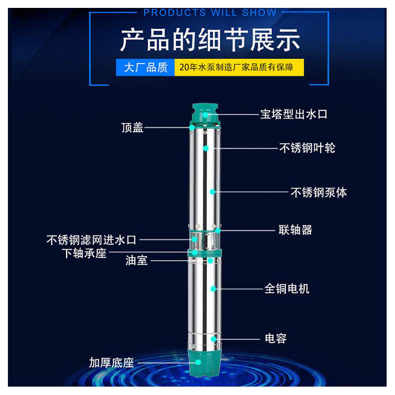 📚 QJ井用深水泵100米高扬程立式深井泵3kw单相不锈钢潜水泵220v