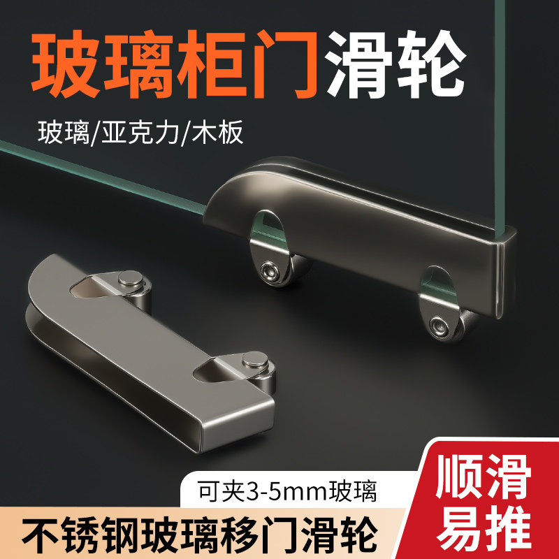 📚 展示柜玻璃移门滑轮铝合金推拉门轨道轮5mm玻璃轮山形玻璃导轨轮