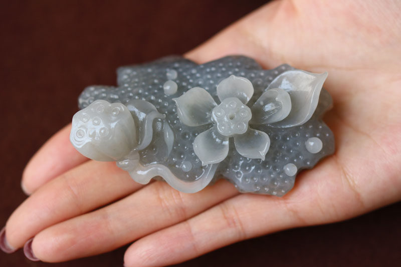 📚 【心若莲花亦倾城】天然和田烟青玉精雕莲花香插,摆件一枚精品