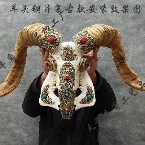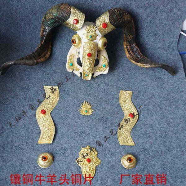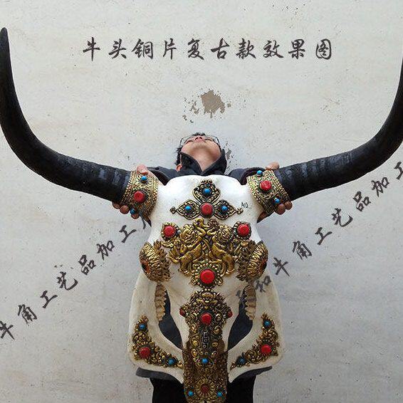 📚 镶铜牛羊头骨工艺品包铜牛头铜片铜皮牛羊头骨装饰品镶金镀金铜