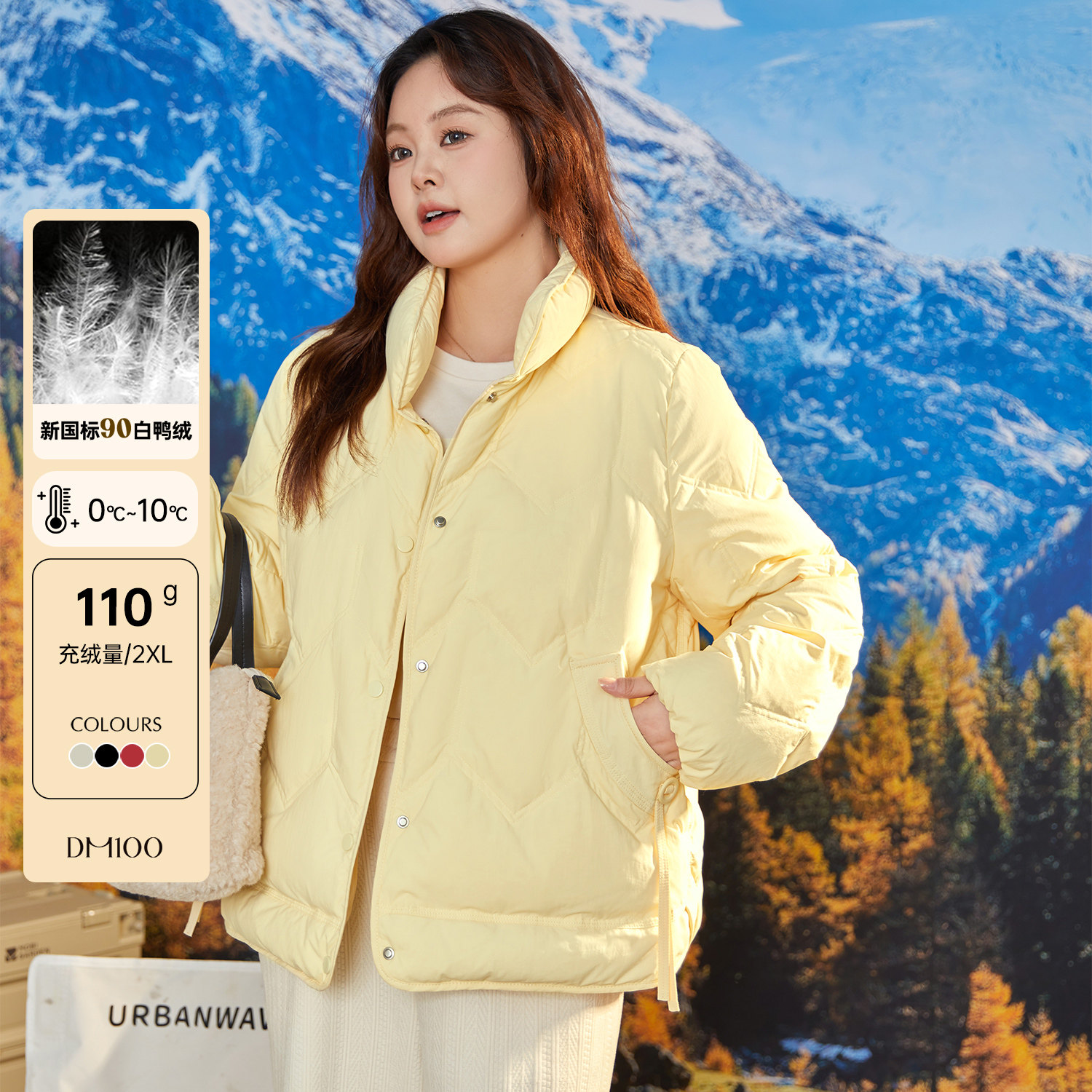 📚 大码百分百微胖mm女装冬季保暖立领90白鸭绒羽绒服轻薄外套
