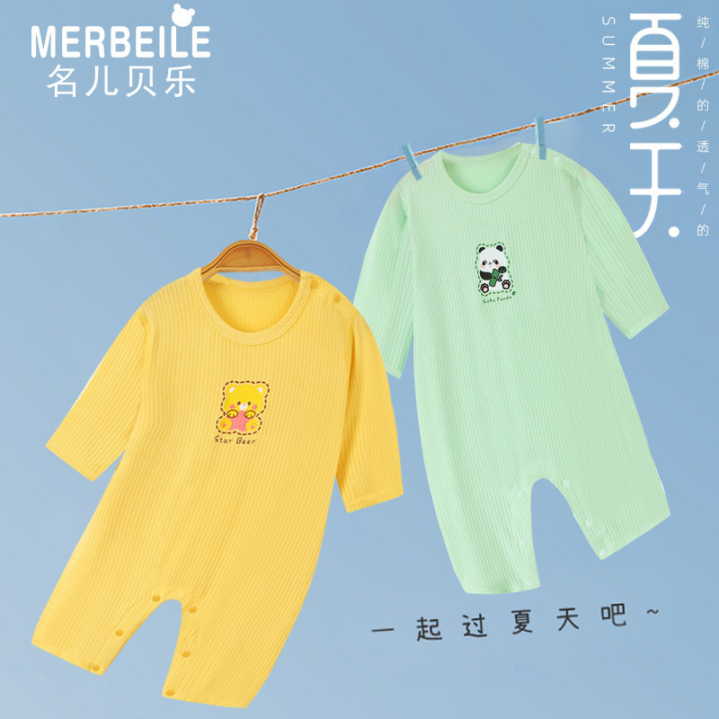 📚 婴儿衣服夏季薄款空调服连体衣长袖莫代尔睡衣6个月宝宝衣服夏天3