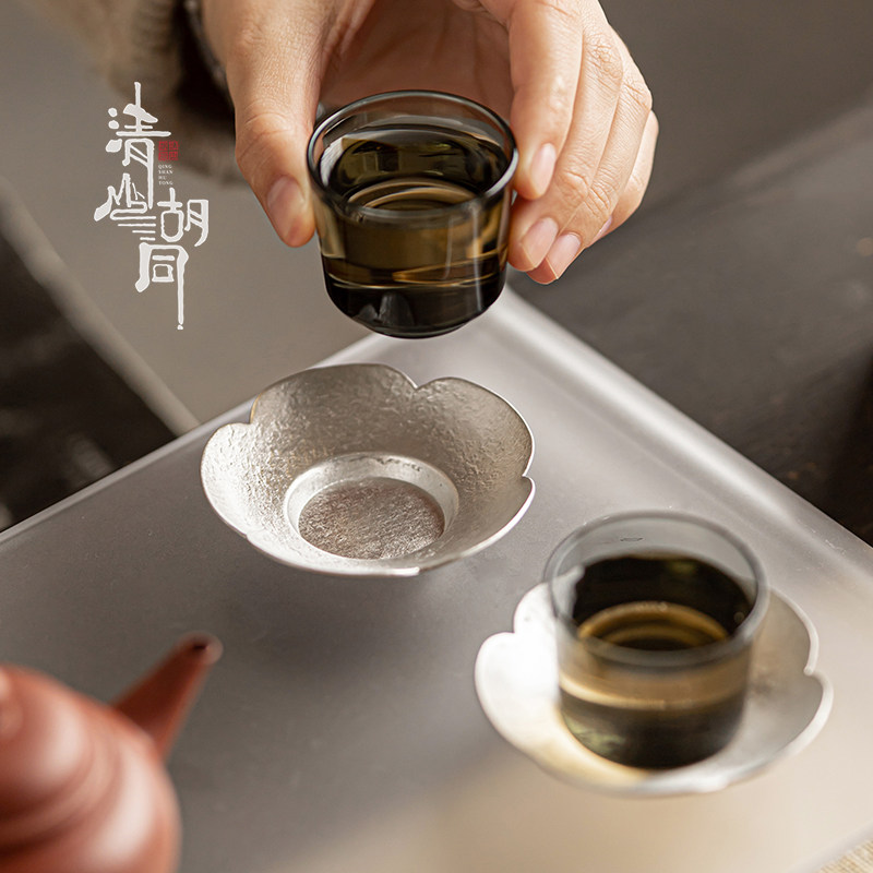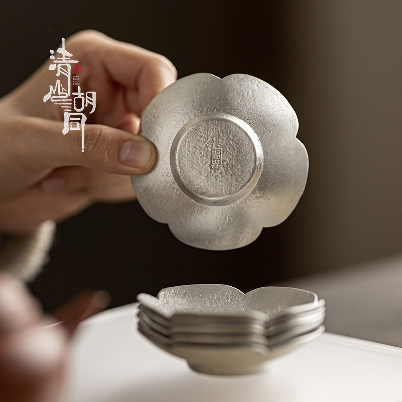 📚 清山胡同手工锡制茶杯垫杯托中式复古防烫隔热垫功夫茶具茶道配件