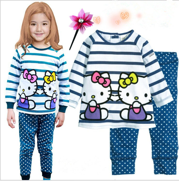 📚 hello kitty外贸女童春秋新款纯棉儿童长袖家居服T恤睡衣内衣套装