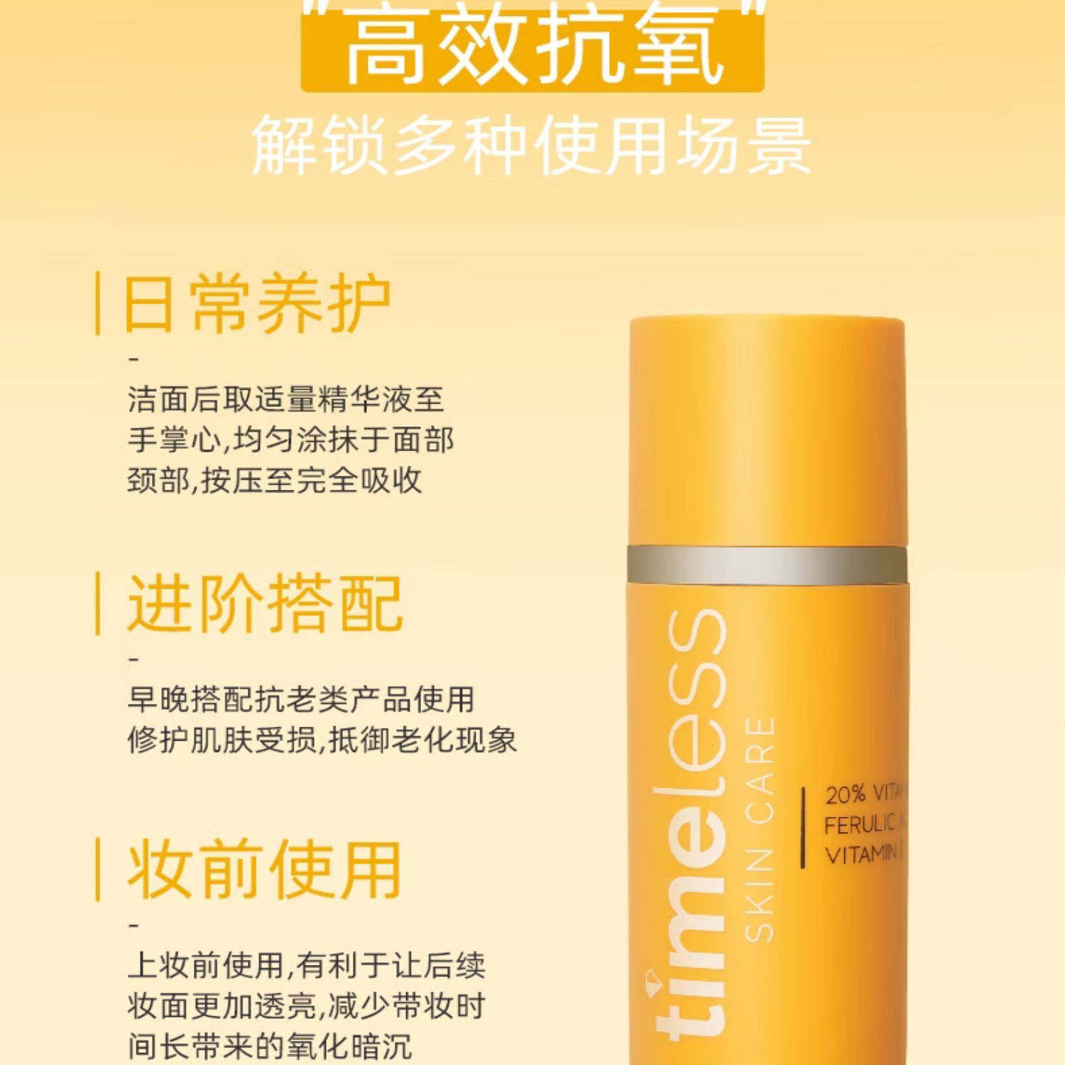📚 美国timeless20%精华阿魏酸淡化色素维C修护CEF精华保湿提亮.30ml